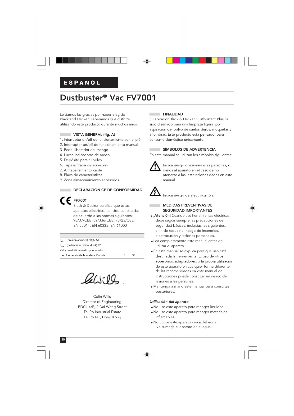 FV7001 Black & Decker certifica que estos aparatos eléctricos han sido construidas de acuerdo a las normas siguientes: 98/37/CEE, 89/336/CEE, 73/23/CEE, EN 55014, EN 60335, EN 61000