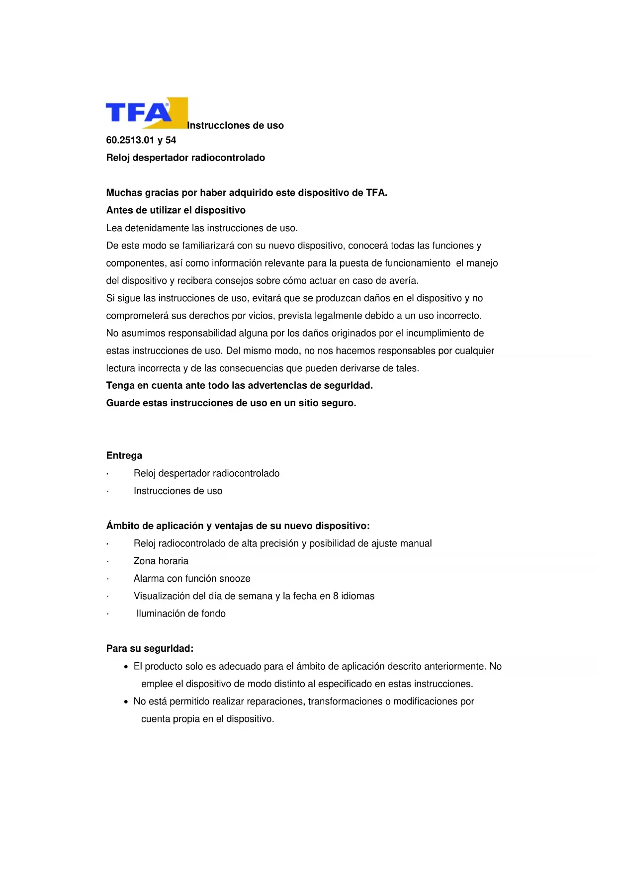 Encuentra gratis el manual del aparato 60.2513 TFA en formato PDF.