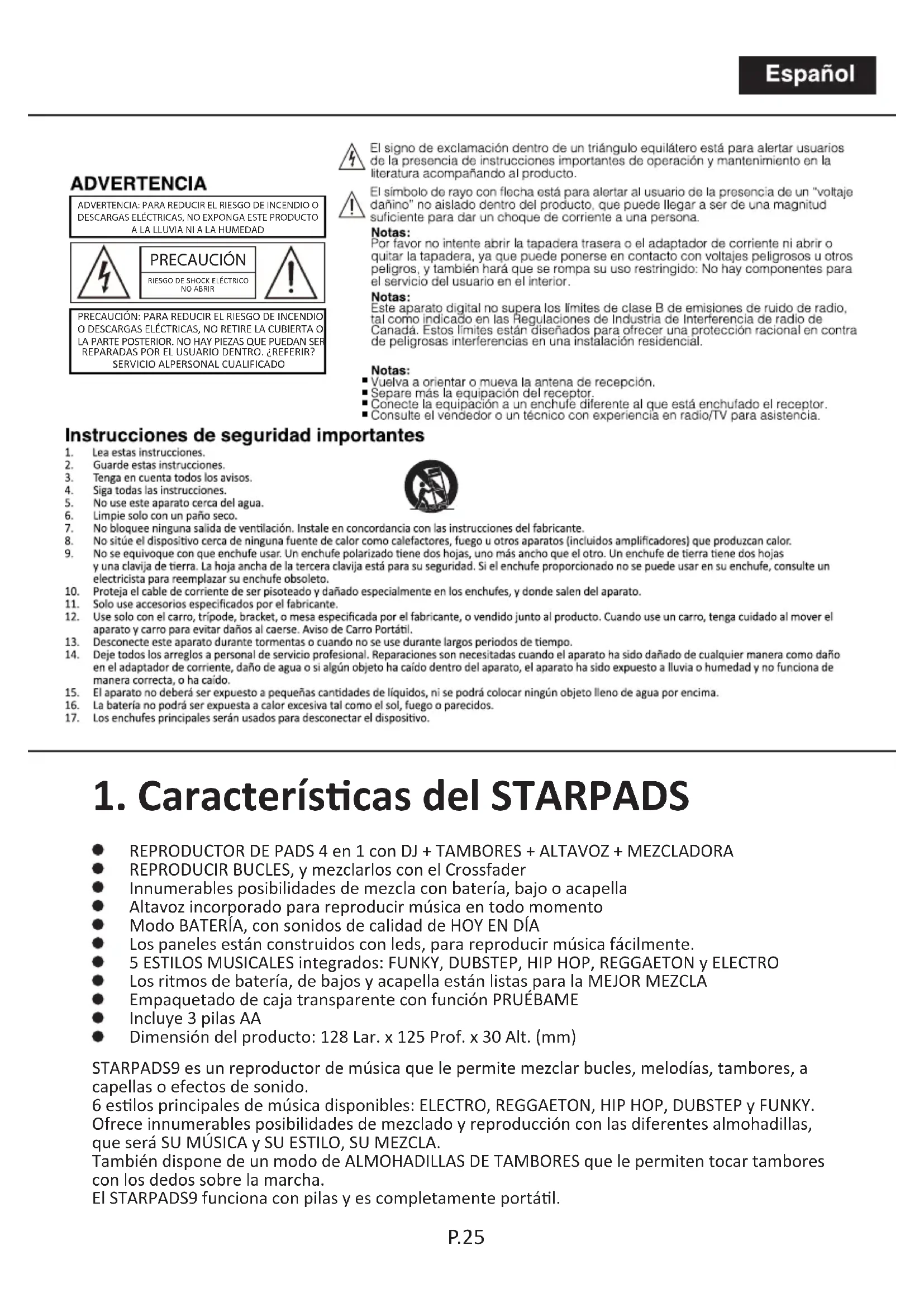 Star Pads 9 - Instrumento musical electrónico iDance - Manual de uso y guía de instrucciones gratis