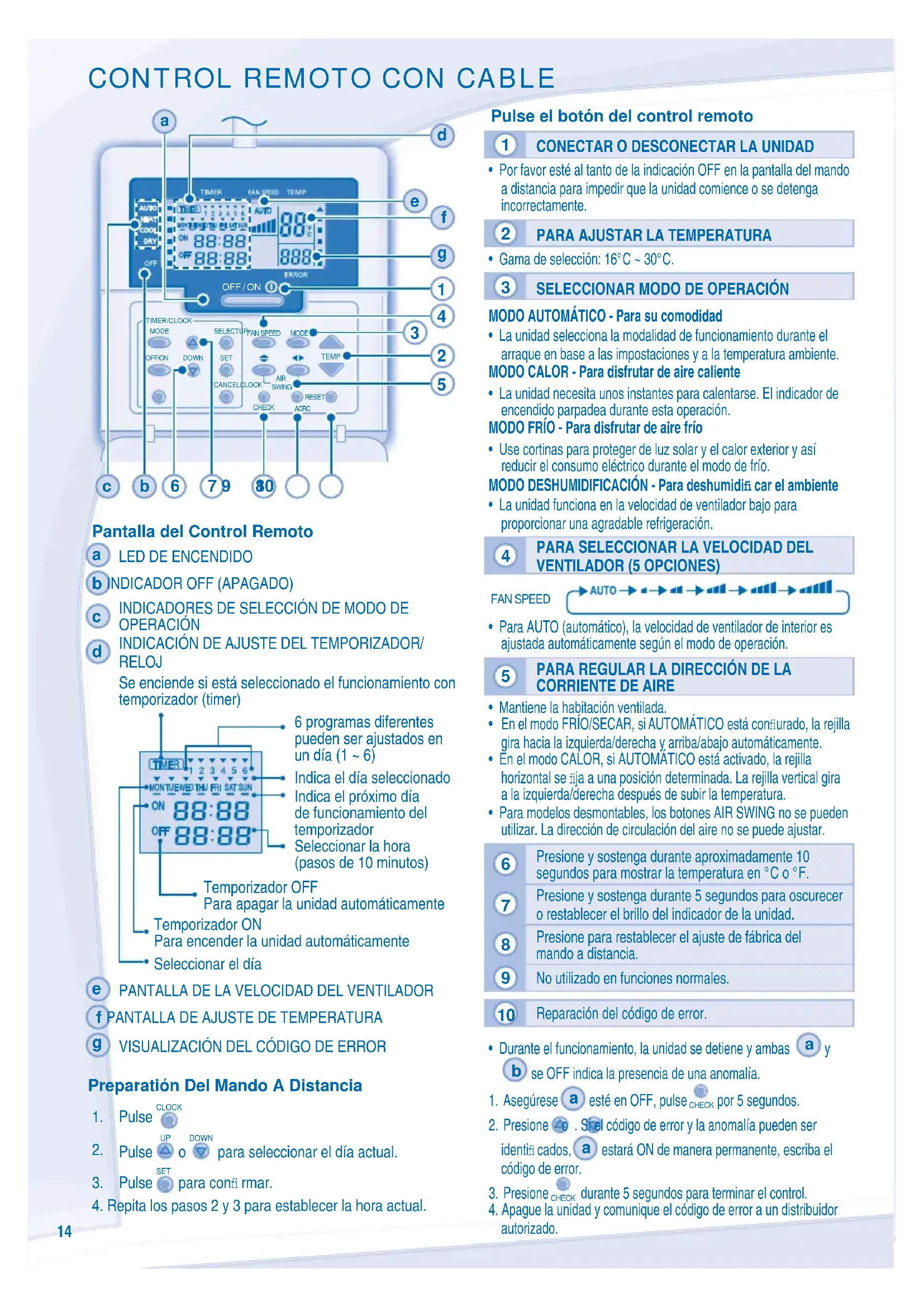 VISUALIZACIÓN DEL CÓDIGO DE ERROR Preparatión Del Mando A Distancia