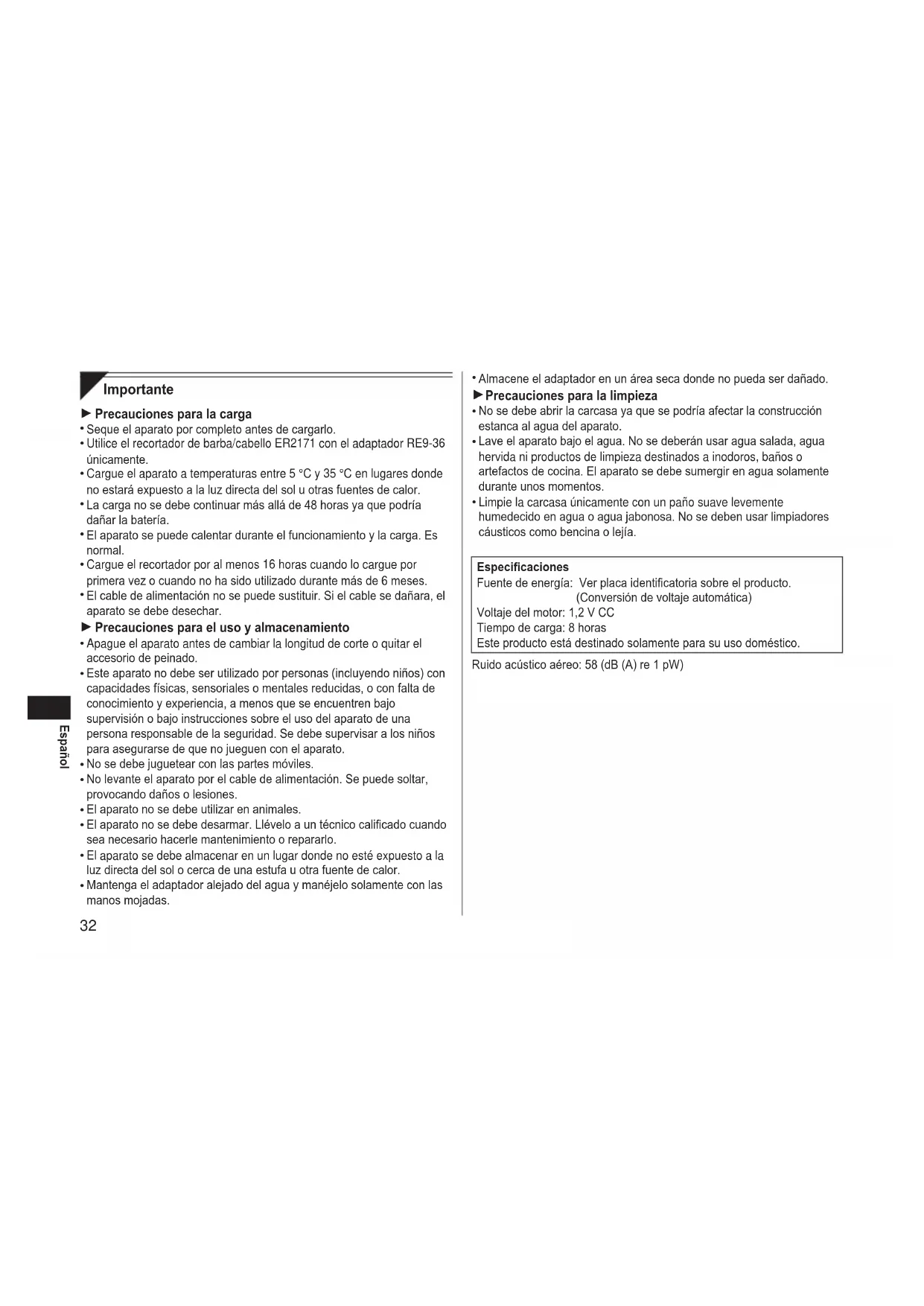 - Utilice el recortador de barba/cabello ER2171 con el adaptador RE9-36 únicamente.