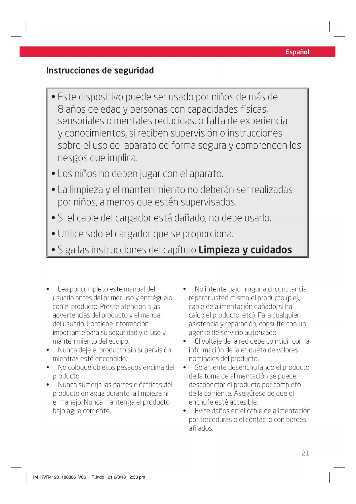 - Este dispositivo puede ser uso por niños de más de 8 años de edad y personas con capacities físicas, sensoriales o mentales reduidas, o falta de experiencia y conocimientos, si reciben supervisión o instruciones sobre el uso del aparato de forma segura y comprenden los ríesgos que implicía.