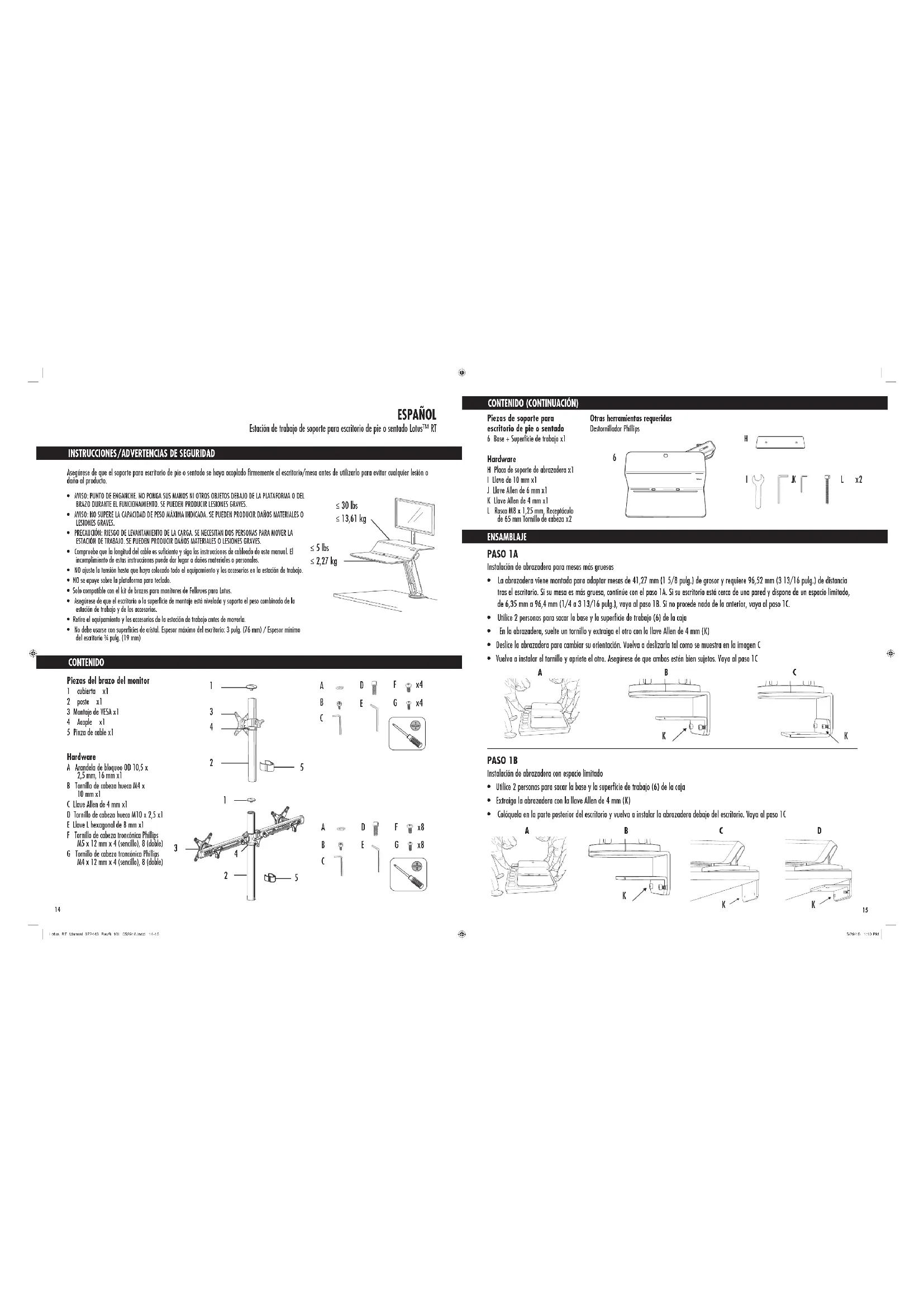 ESPAÑOL Estación de trabajo de soporte para escritorio de pie o sentado Lotus™ RT CONTENIDO (CONTINUACIÓN)