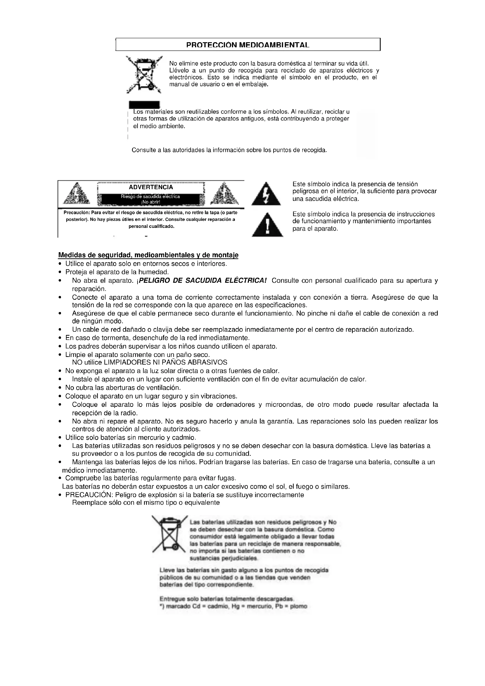 - Utilice solo baterías sin mercurio y cadmium.
