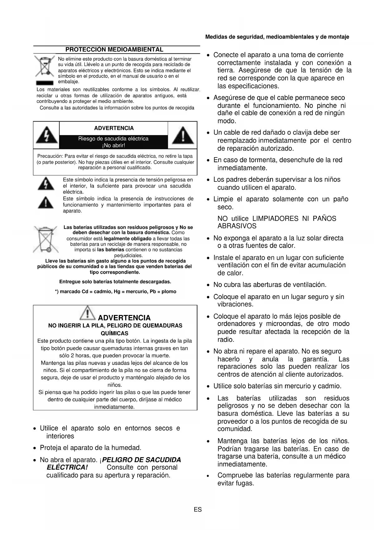 - Utilice solo baterias sin mercurio y cadmium.