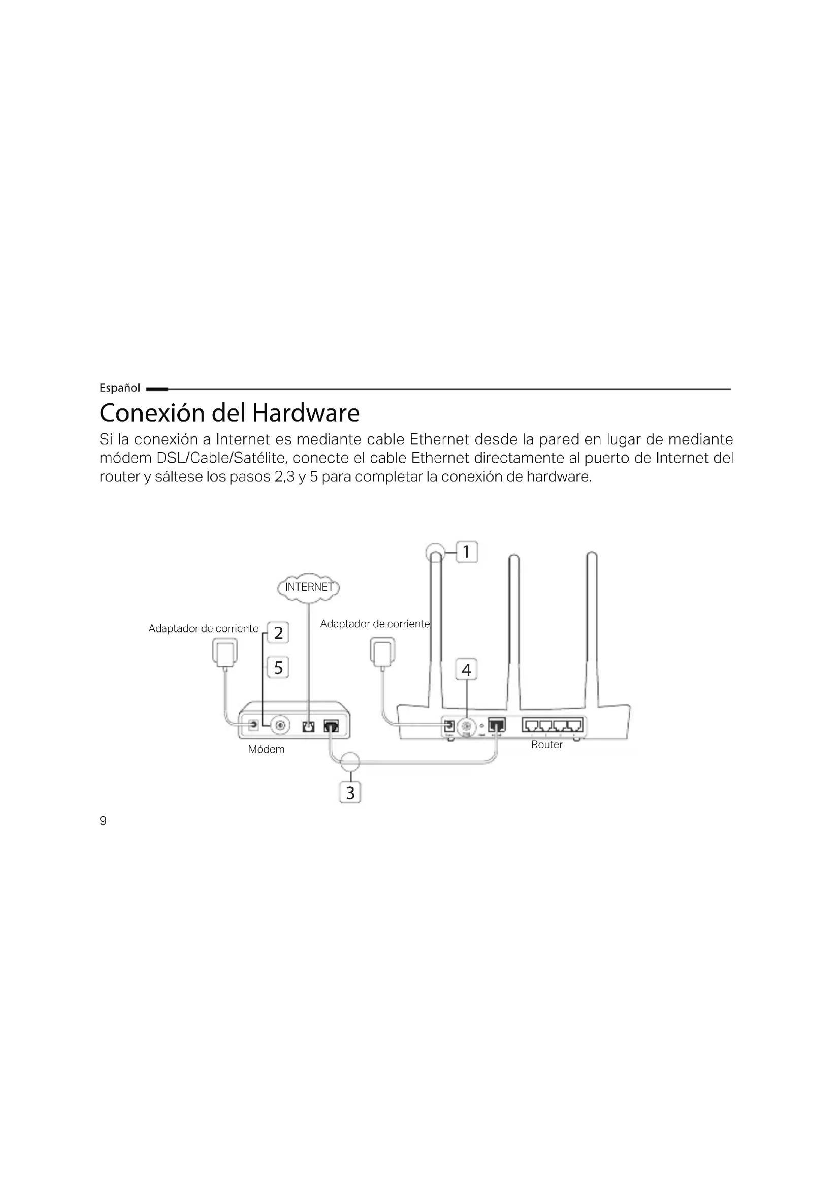 Adaptador de corriente Adaptador de corriente INTERNET Módem Router10 Español