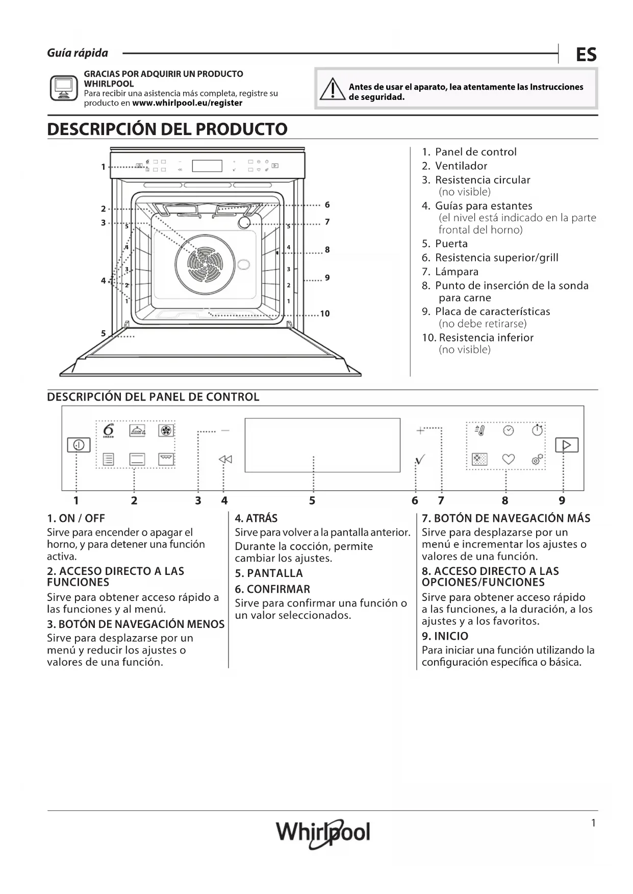 WHIRLPOOL Para recibir una asistencia más completa, registre su producto en www . whirlpool . eu/ register Antes de usar el aparato, lea atentamente las Instrucciones de seguridad.