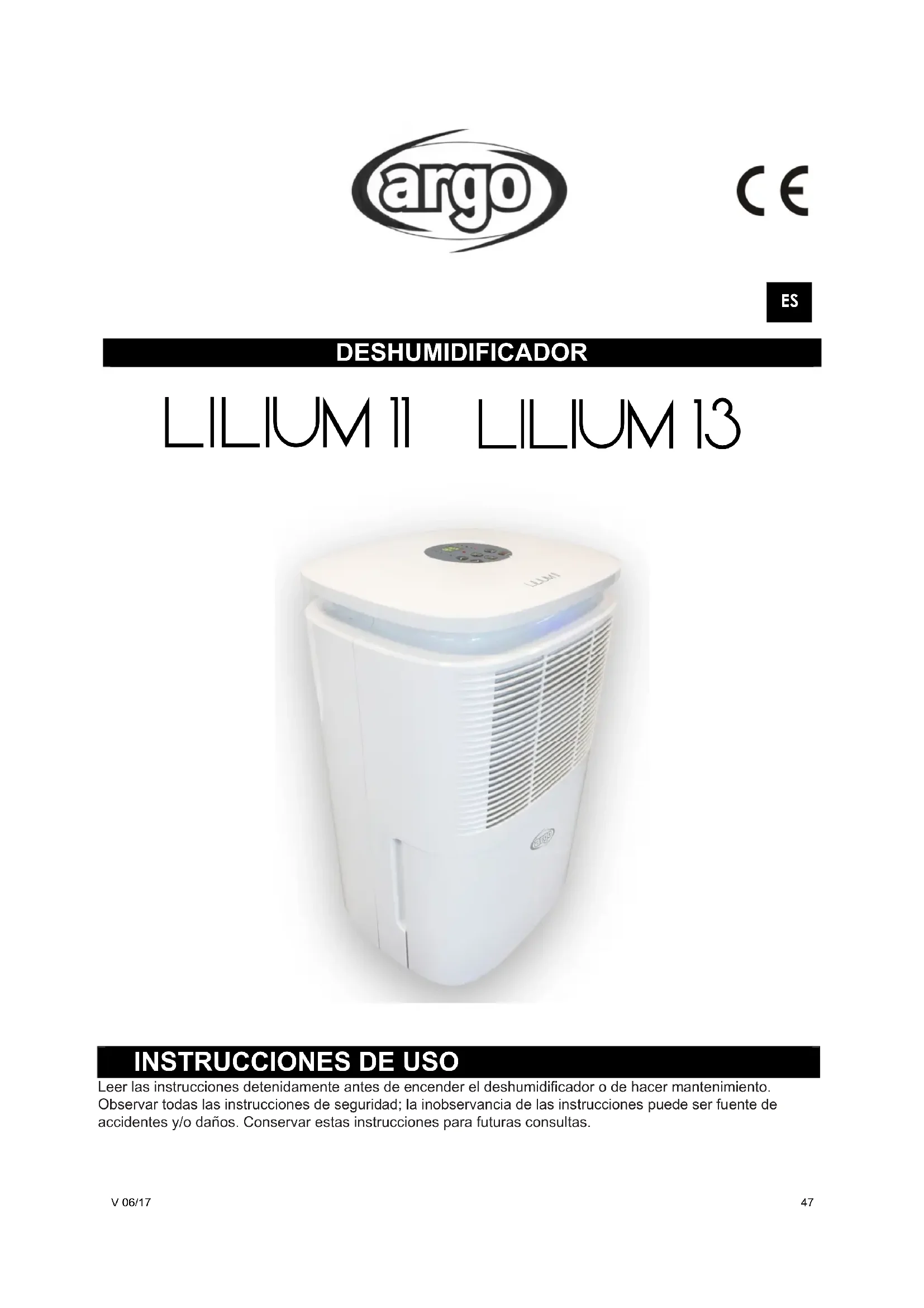 Lilium 13 - Deshumidificador ARGO - Manual de uso y guía de instrucciones gratis