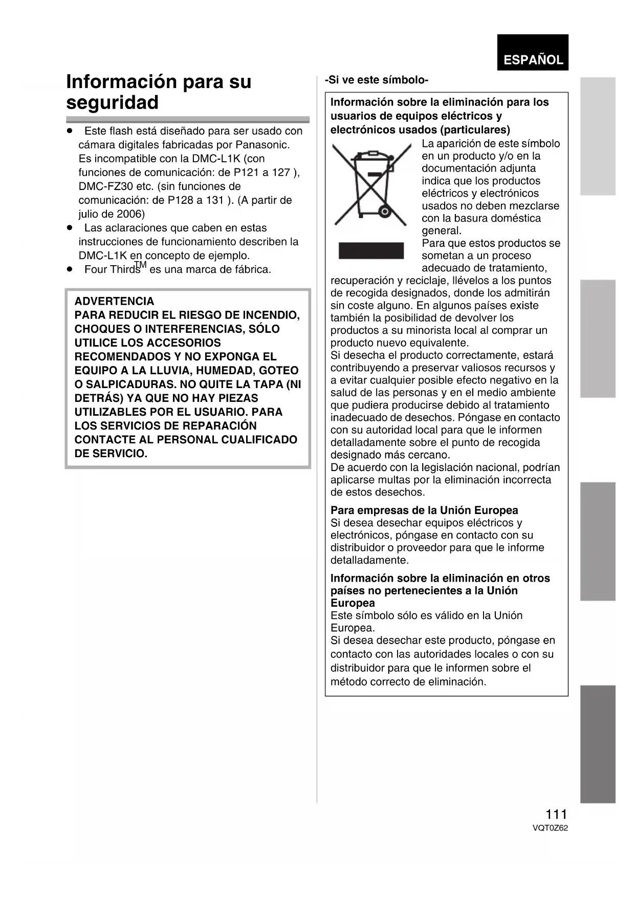 Información para su seguridad 111