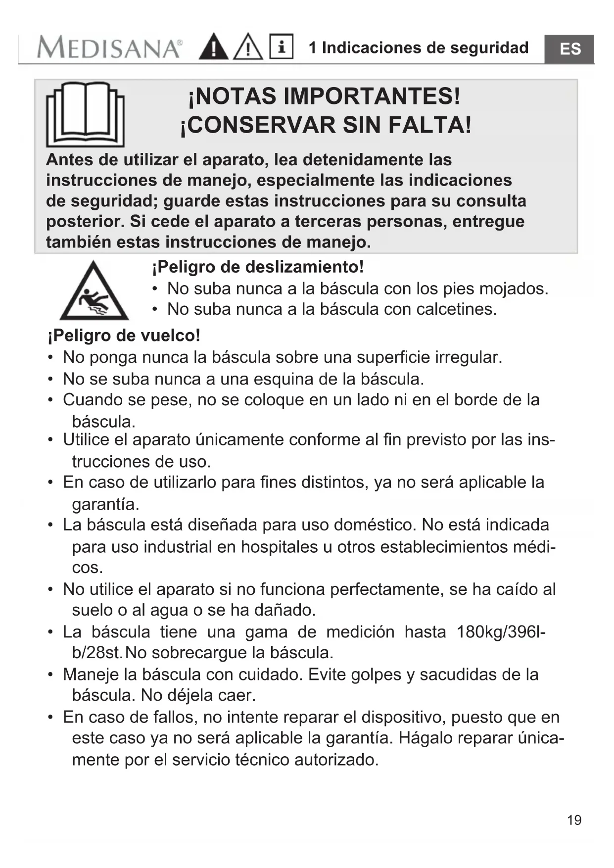 - Cuando se pese, no se coloque en un lado ni en el borde de la báscula.20 1 Indicaciones de seguridad