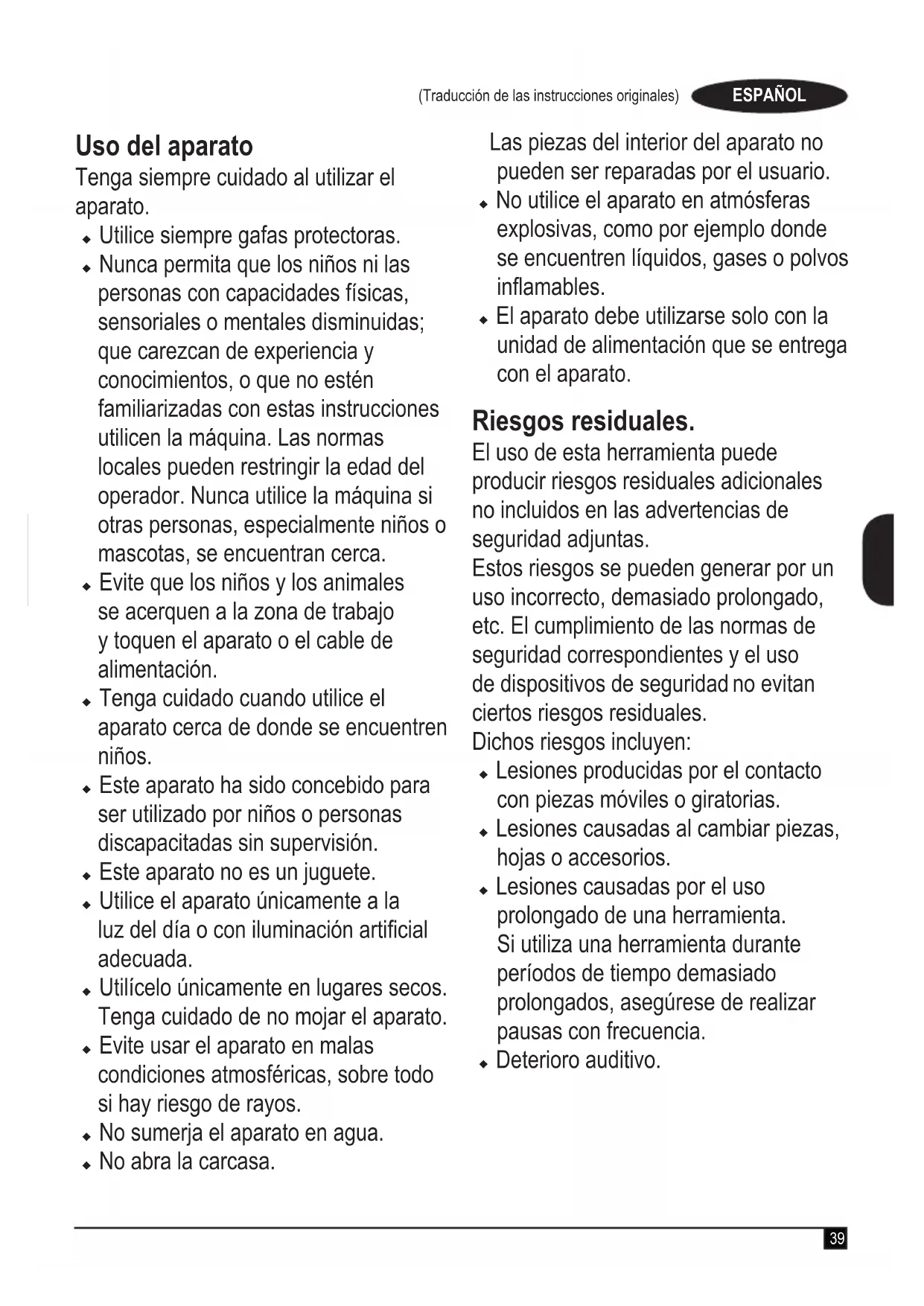 (Vertaling van de originele instructies) NEDERLANDS (Traducción de las instrucciones originales) ESPAÑOL