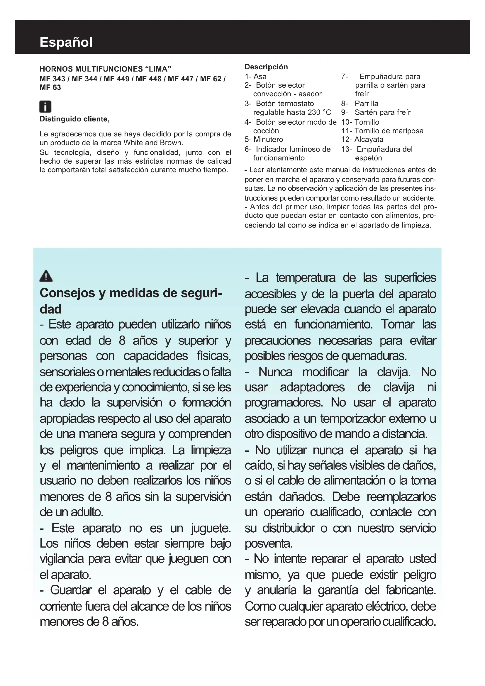 Encuentra gratis el manual del aparato MF449 WHITE AND BROWN en formato PDF.