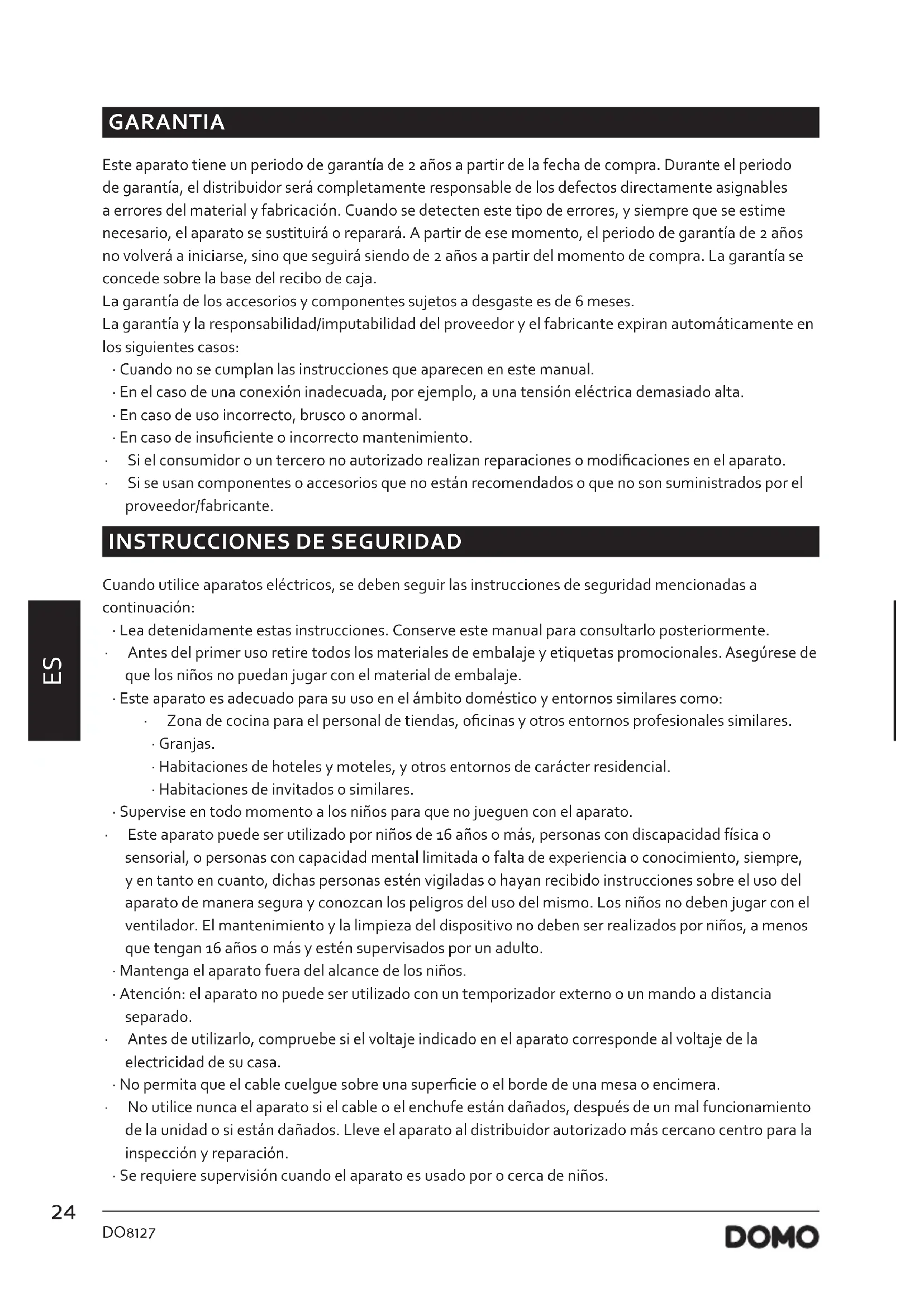 DO8127 - Admirador DOMO - Manual de uso y guía de instrucciones gratis