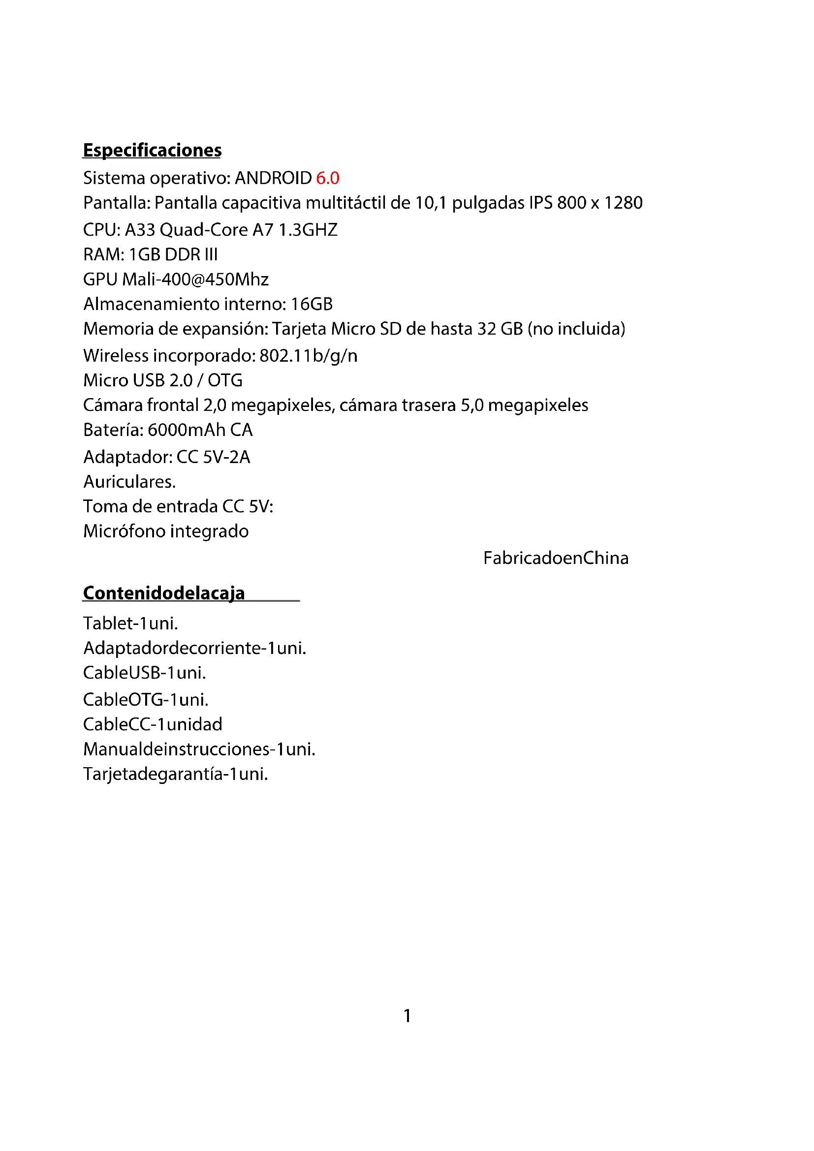 Especificaciones. 1