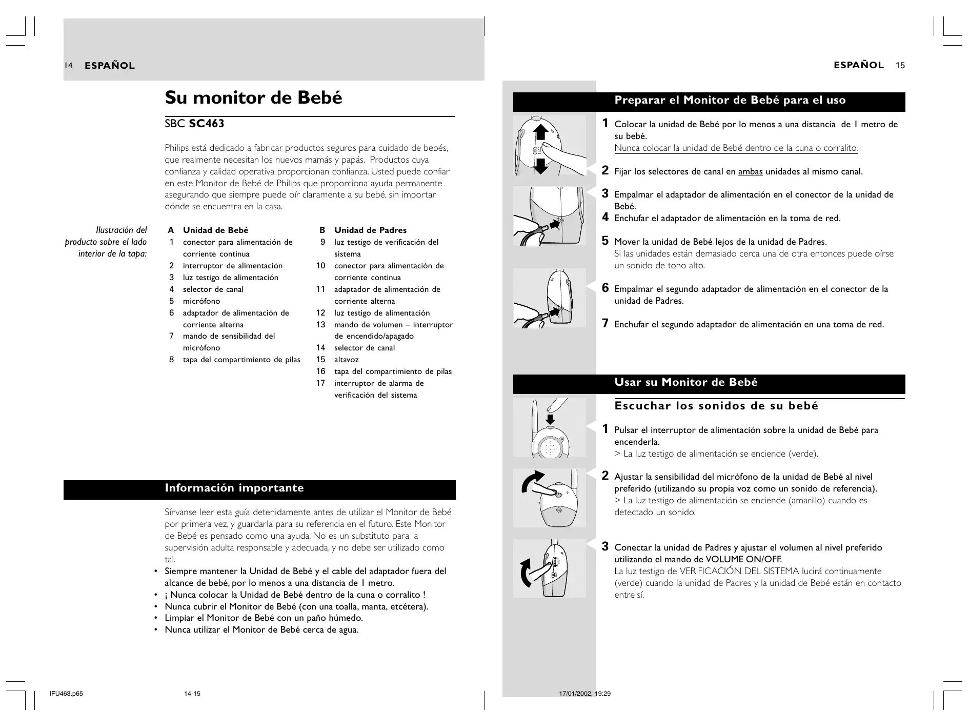 Su monitor de Bebé Preparar el Monitor de Bebé para el uso SBC SC463