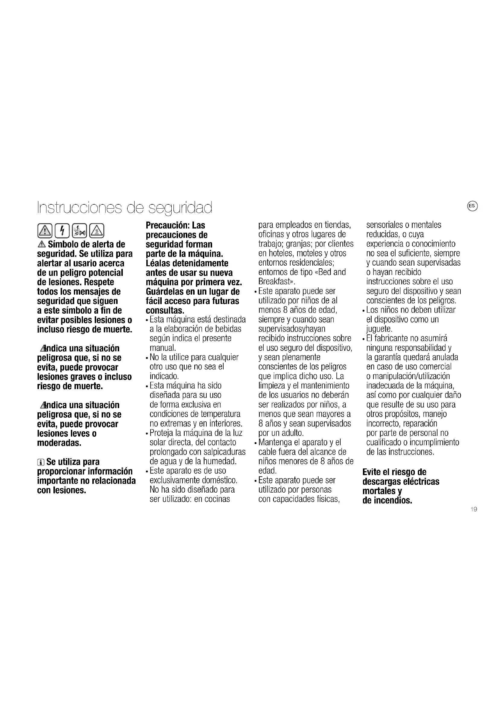 Este aparato es de uso exclusivamente doméstico. No ha sido diseñado para ser utilizado: en cocinas para empleados en tiendas, oficinas y otros lugares de trabajo; granjas; por clientes en hoteles, moteles y otros entornos residenciales; entornos de tipo «Bed and Breakfast».
