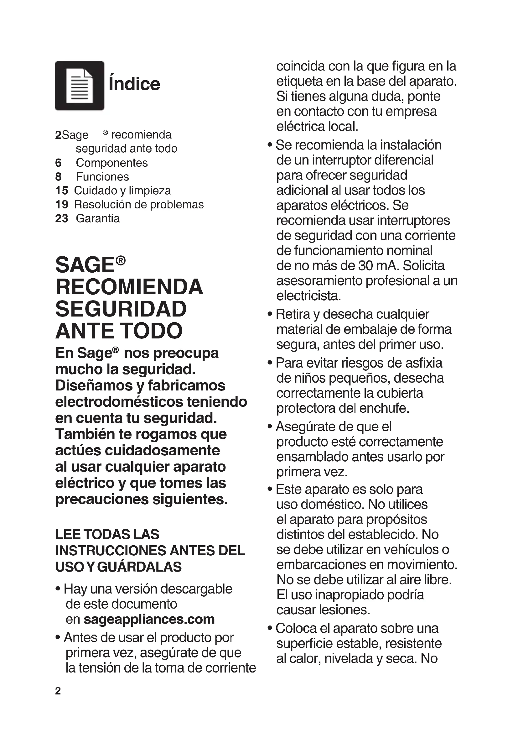 - Hay una versión descargable de este documento en sageappliances.com