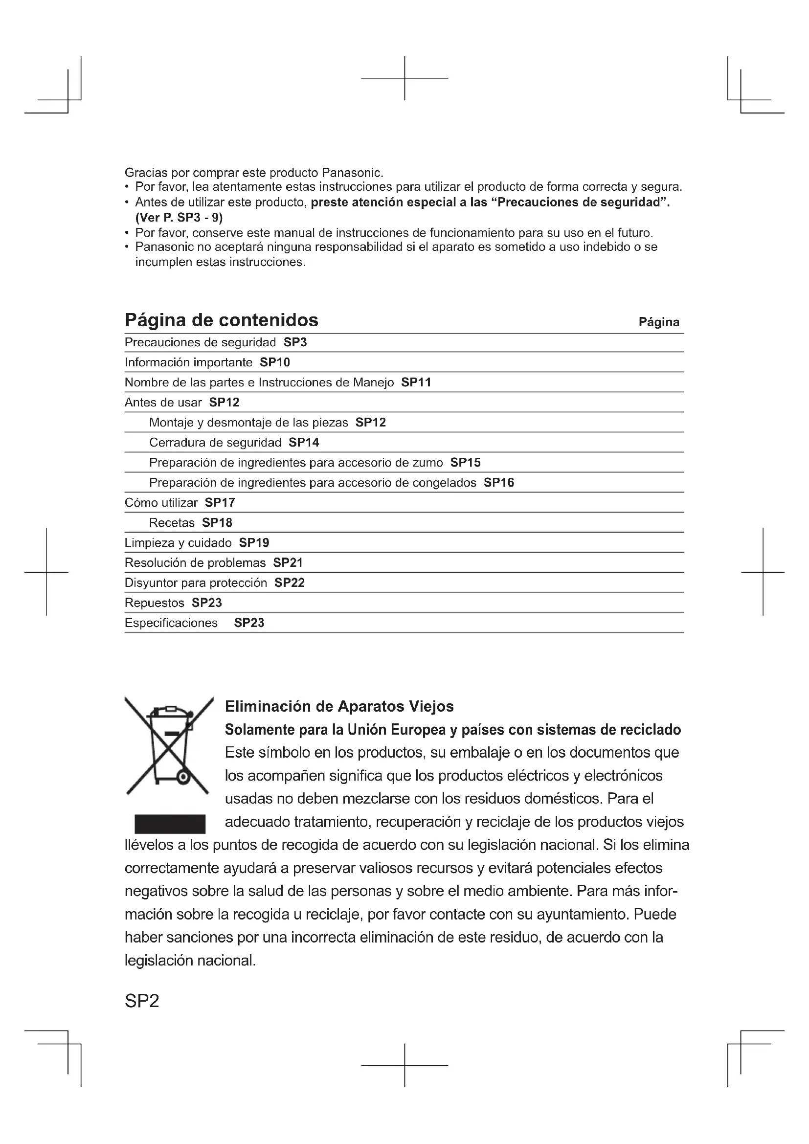 - Antes de utiliser este producto, preste atencion especial a las "Precauaciones de seguidad". (Ver P. SP3 - 9)