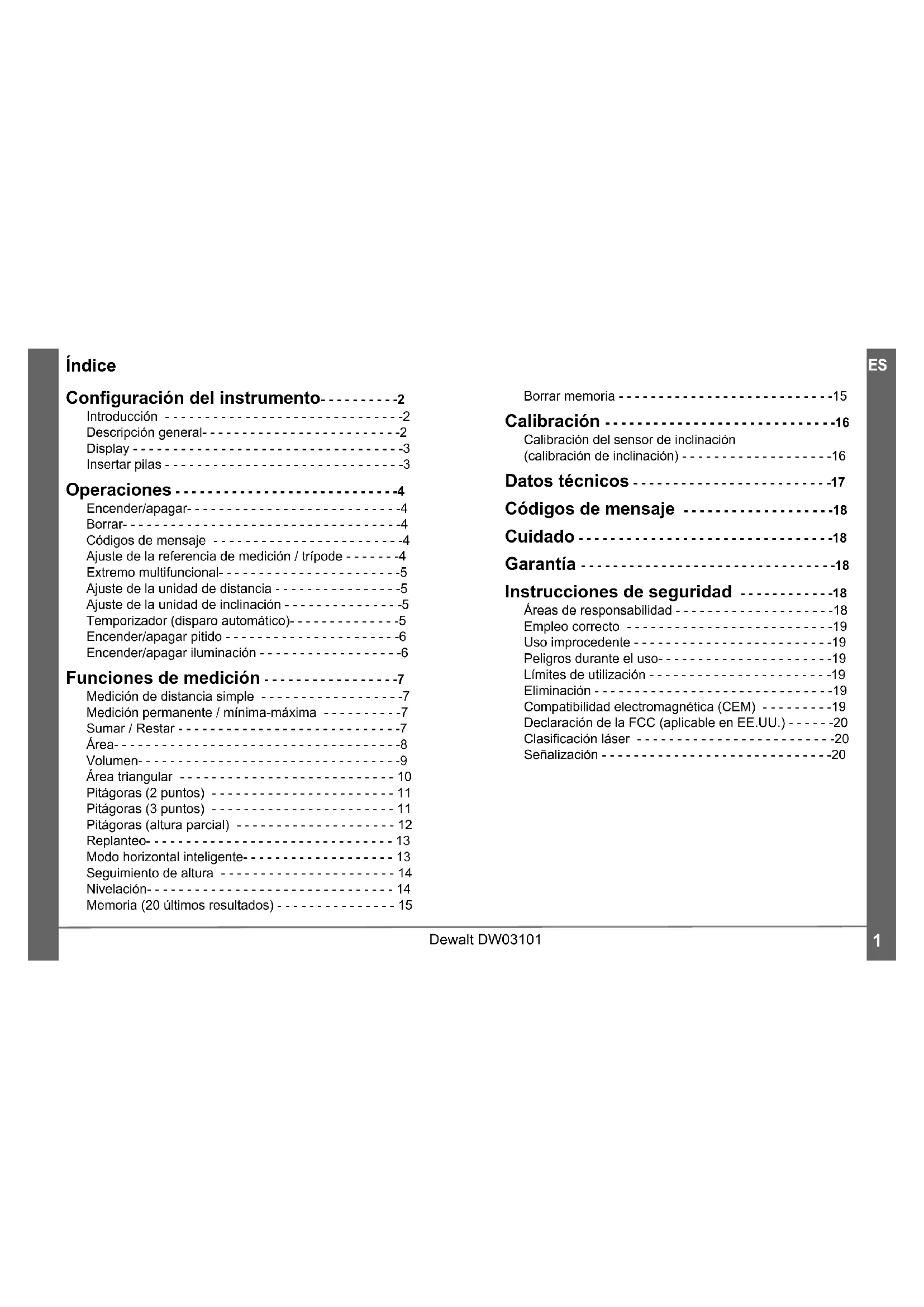Descarga las instrucciones para tu Telémetro en formato PDF gratis! Encuentra tus instrucciones DW03101 - DEWALT y toma tu dispositivo electrónico nuevamente en la mano. En esta página están publicados todos los documentos necesarios para el uso de su dispositivo. DW03101 de la marca DEWALT.