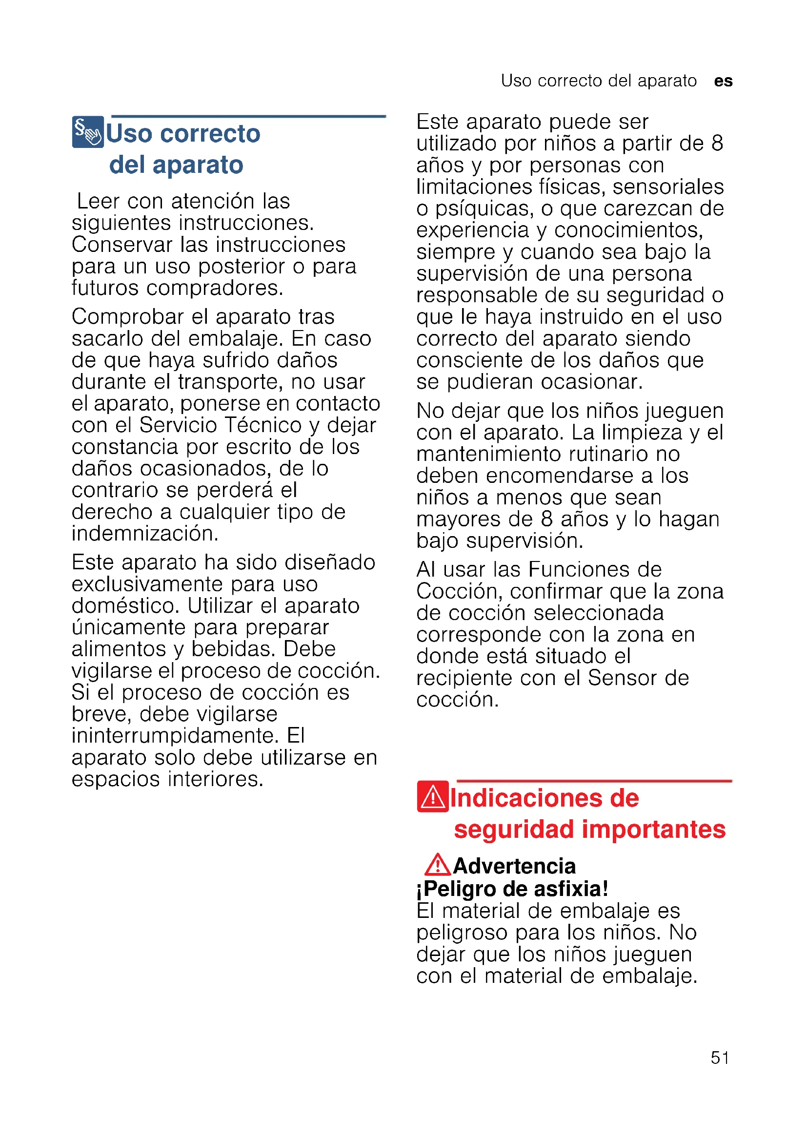 Este aparato ha sido disnado exclusivamente para uso domestico. Utilizar el aparato unicamente para preparar alimentos y bebidas. Debe vigilarse el proceso de cocccion. Si el proceso de cocccion es breve, debe vigilarse ininterruptidamente. El aparato solo debe utilizes en espacios interiores.