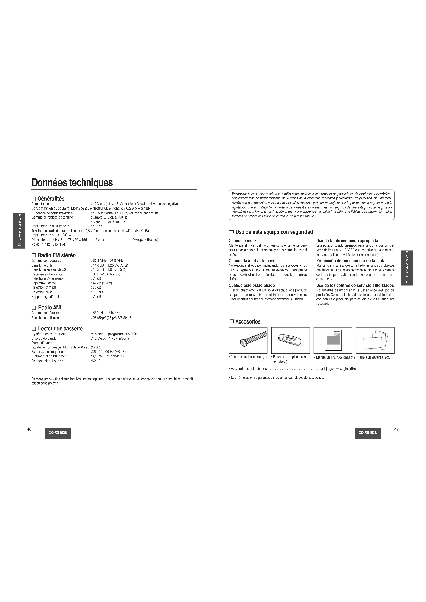 CQRG153U - Radio del coche PANASONIC - Manual de uso y guía de instrucciones gratis