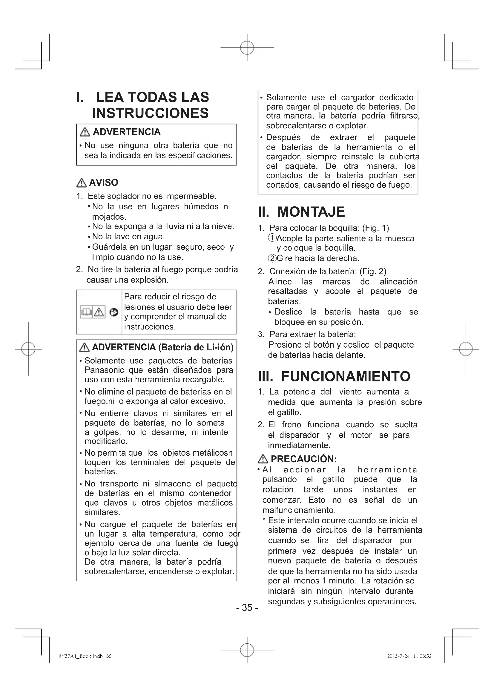 MANUAL DE USUARIO EY37A1 PANASONIC