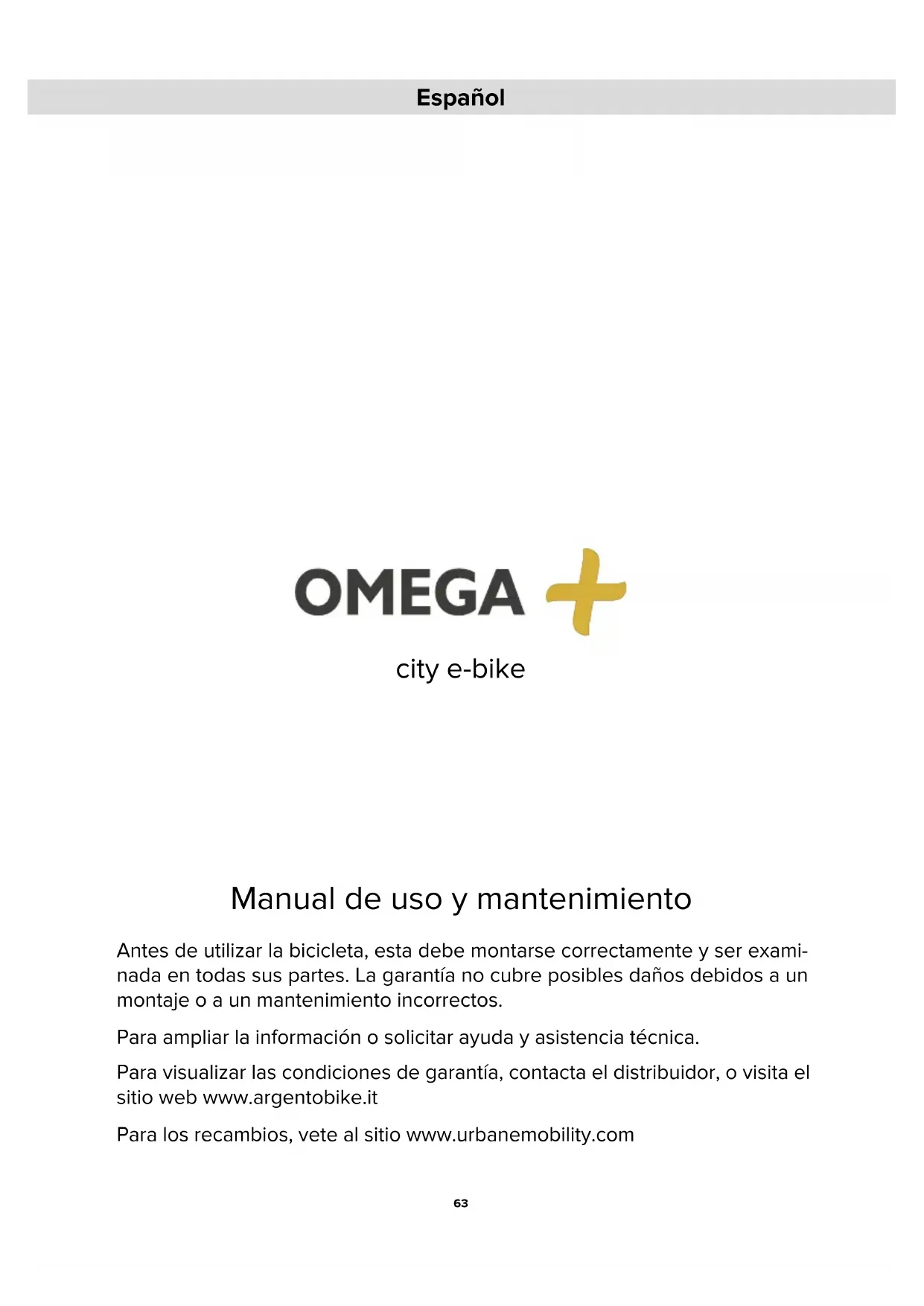 Omega - Bicicleta electrica Argento - Manual de uso y guía de instrucciones gratis