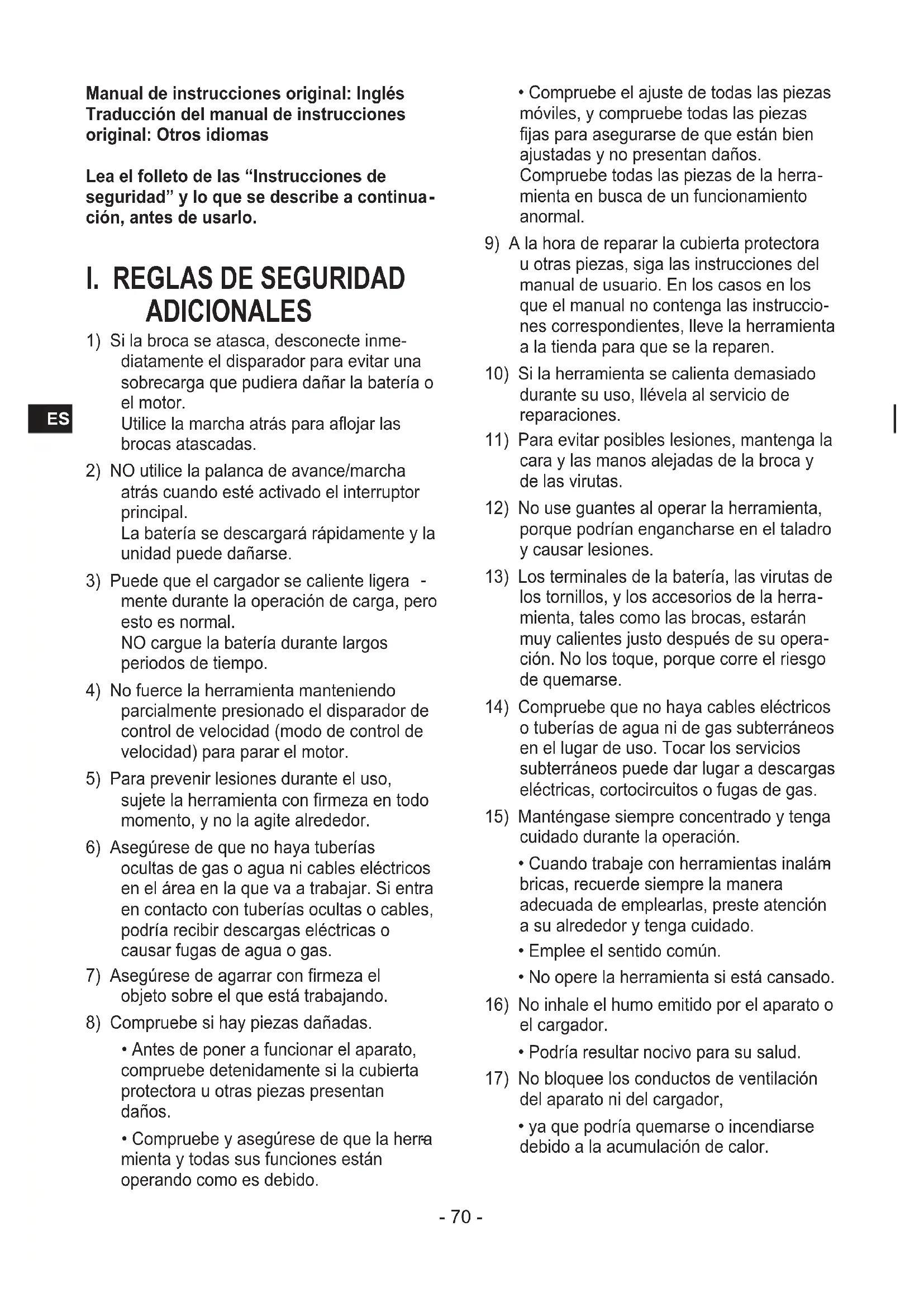 Manual de instrucciones original: Inglés Traducción del manual de instrucciones original: Otros idiomas Lea el folleto de las “Instrucciones de seguridad” y lo que se describe a continua