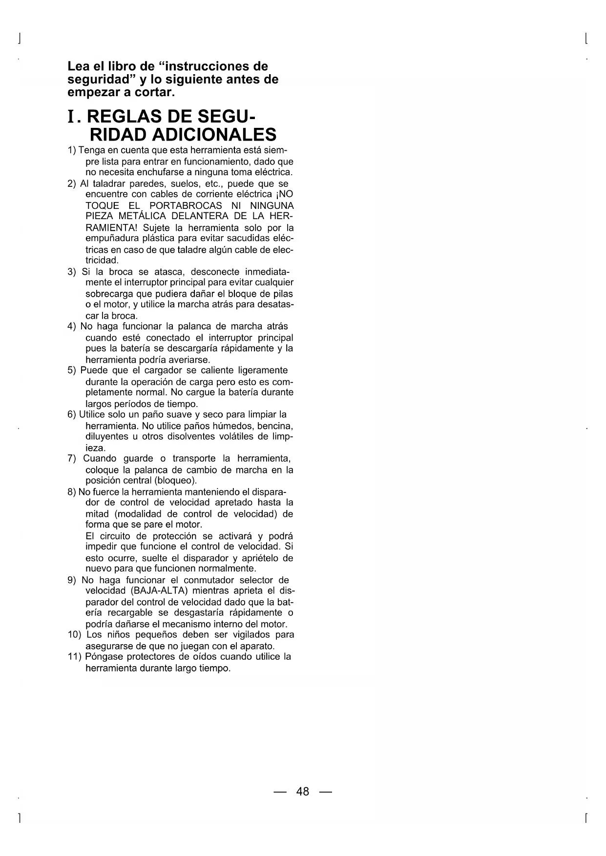 I. REGLAS DE SEGURIDAD ADICIONALES