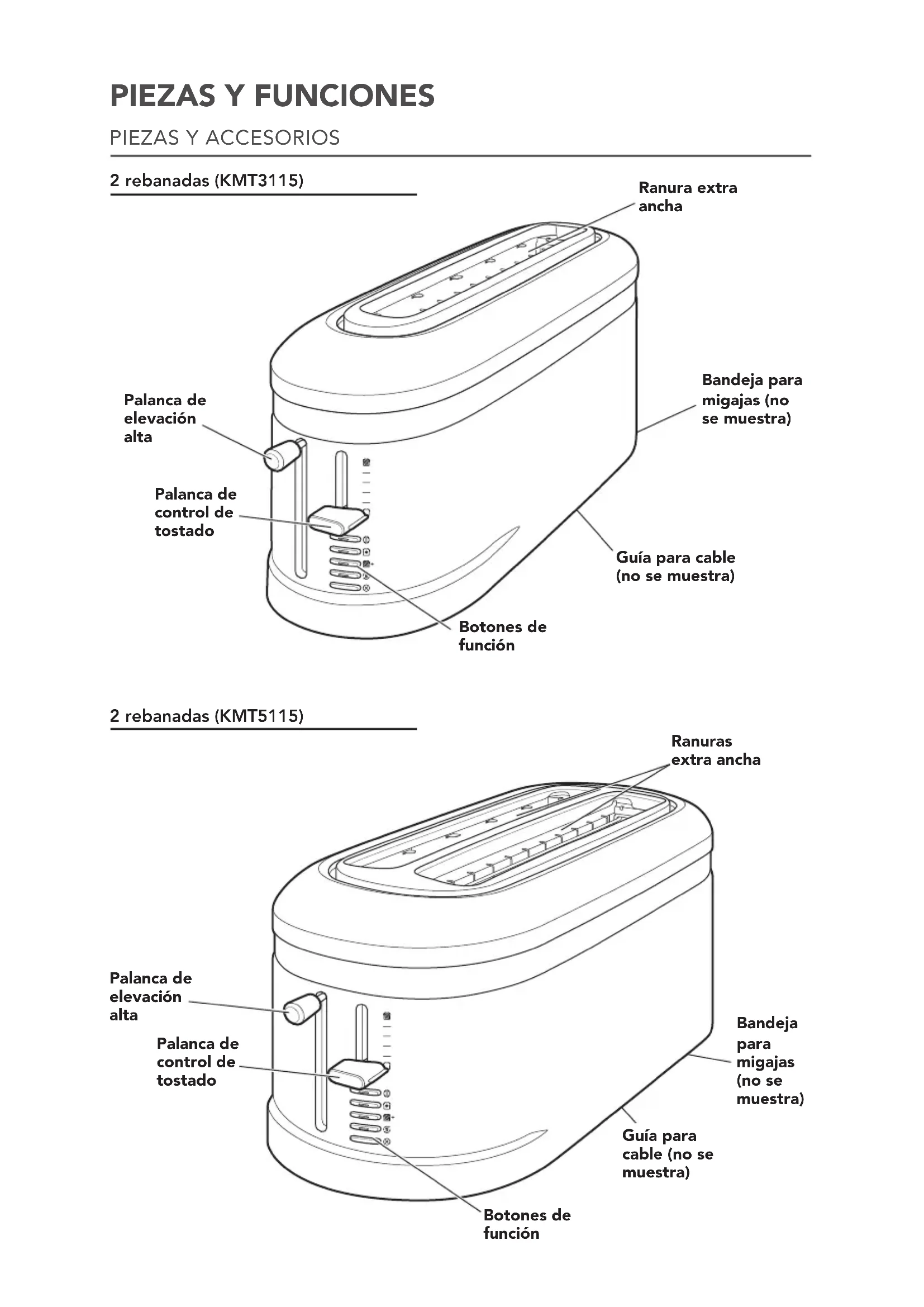 NOTA: Todas las imágenes que se muestran son del tostador de 2 rebanadas, modelo KMT3115.