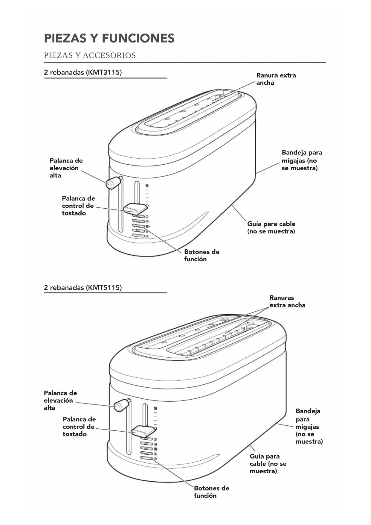 NOTA: Todas las imagenes que se muestran son del tostador de 2 rebanadas, modelo KMT3115.