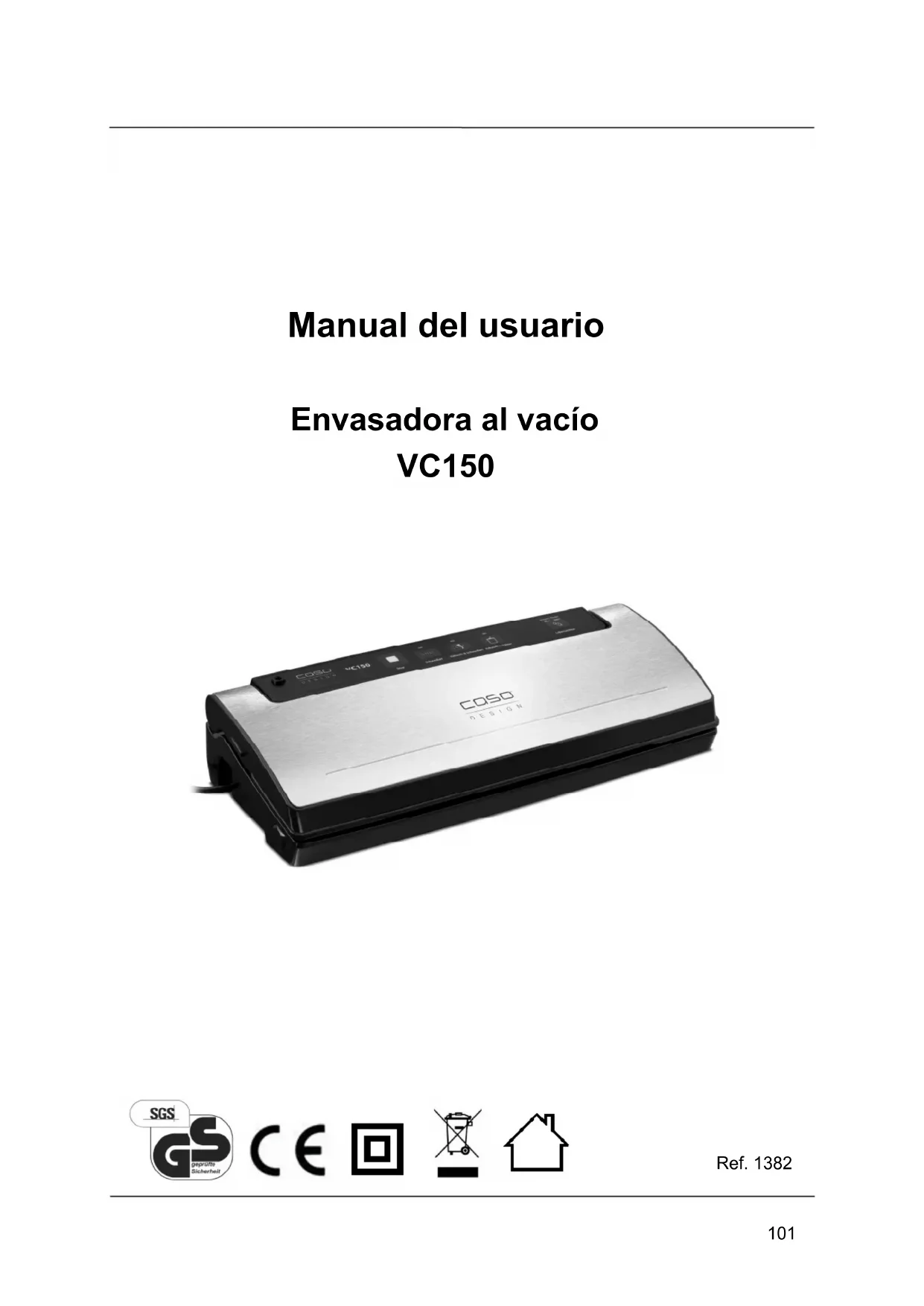 VC150 - Máquinas de envasado al vacío CASO - Manual de uso y guía de instrucciones gratis