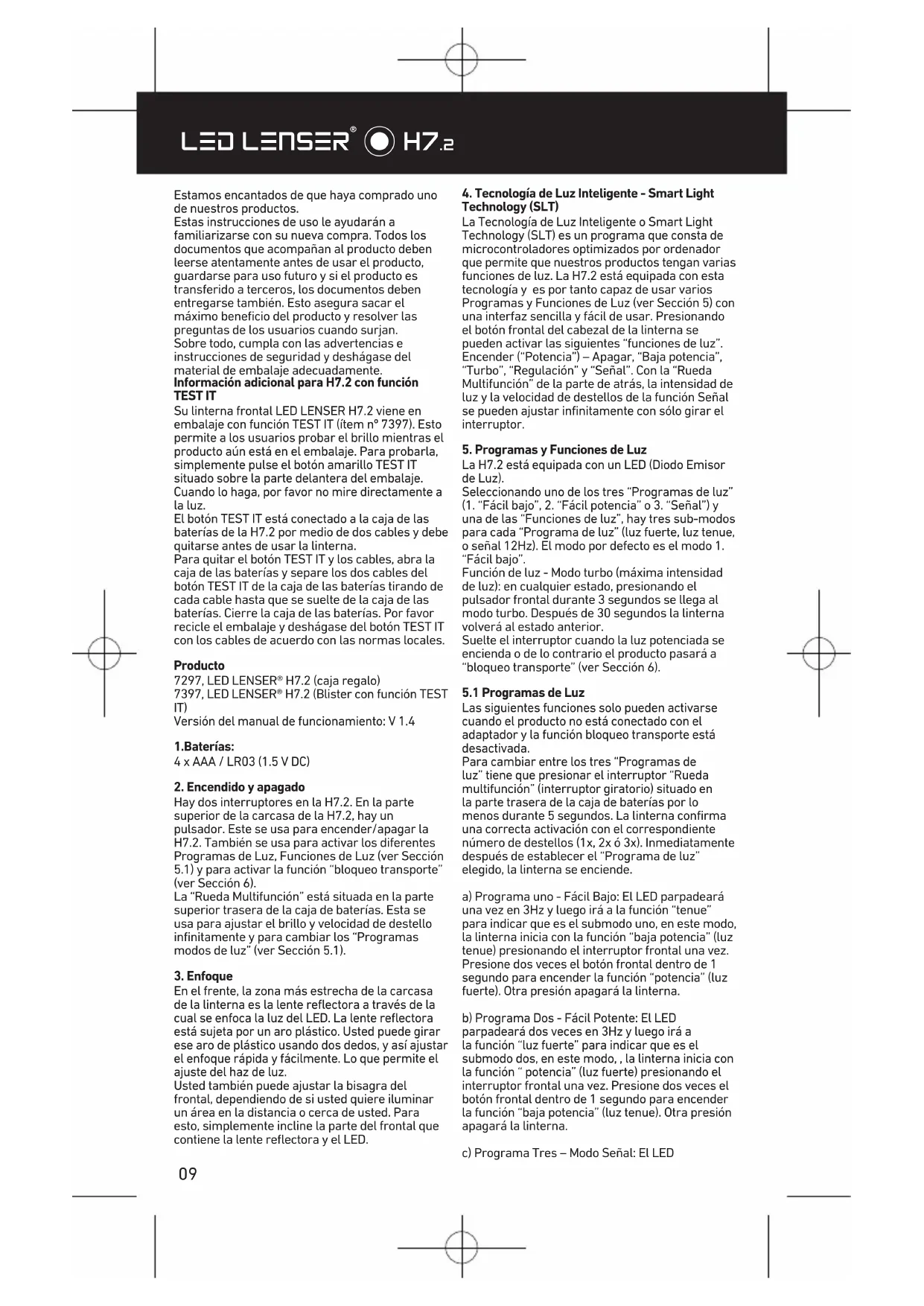 Por seguidad y motivos de homologacion (CE), el producto no debe ser modified y/o enviado. El producto debe ser uso exclusivamente como una linterna alimentada por bateria o bateria recargable. Si la H7.2 es usada para cualesterootin, oincorrectamente,uede resultar danada yperderasus garantiadeuso seguro(peligro de fuego, corte-circuito, descarga electrica, etc.) ypor tanto no habra responsabilidad por daon a personas o a propidad. La garantia del fabricante queda también anulada.