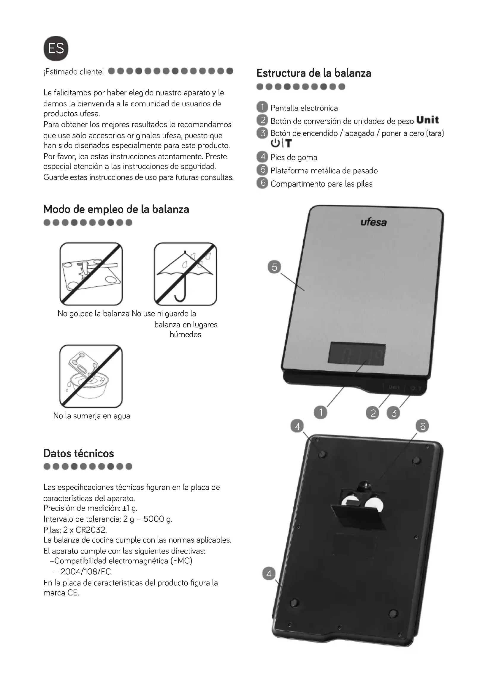 BC1500 - Básculas de cocina UFESA - Manual de uso y guía de instrucciones gratis