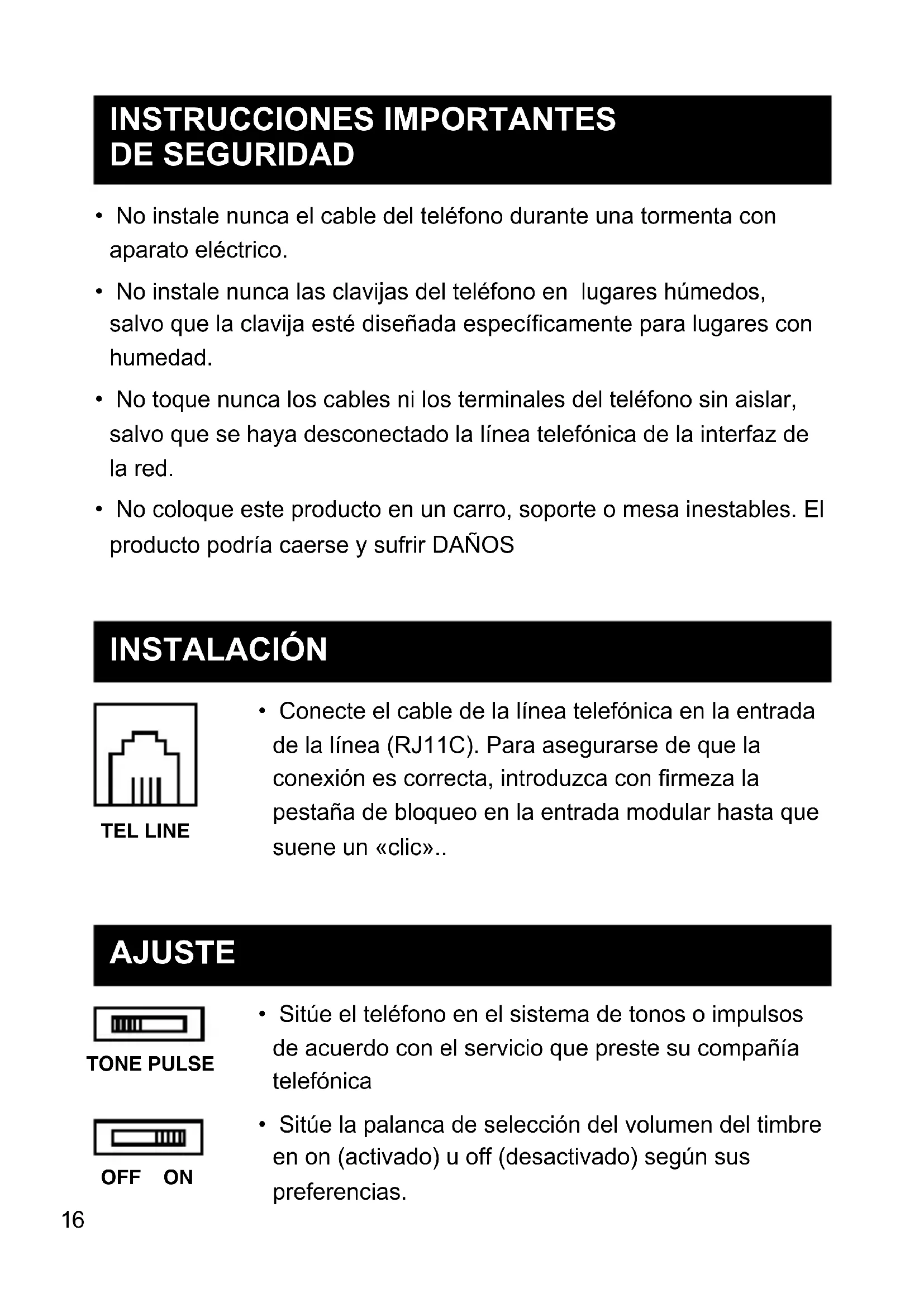 - No instale nunca el cable del teléfono durante una tormenta con aparato eléctrico.