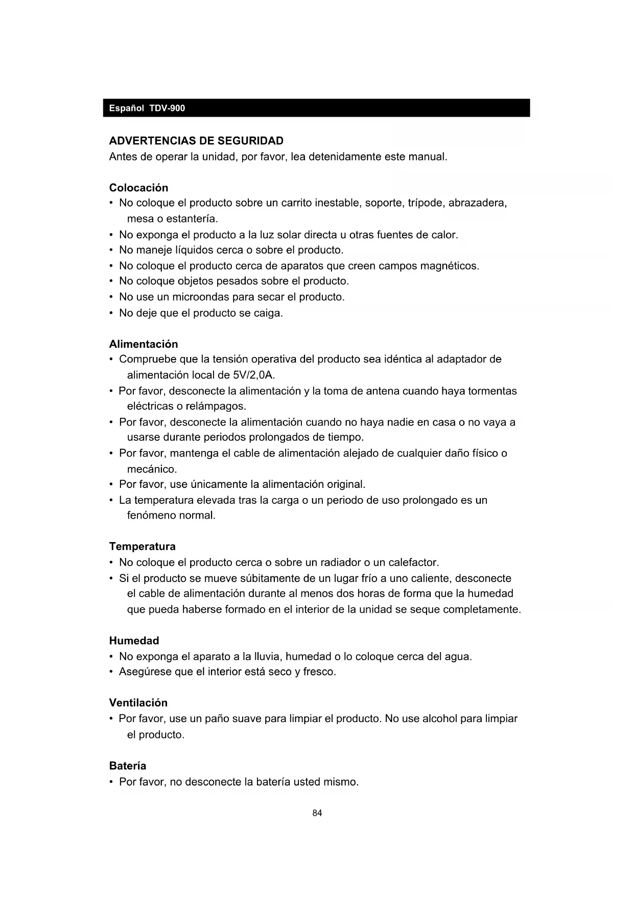 - Por favor, no cargue el producto durante un periodo prolongado de tiempo. Almacenamiento