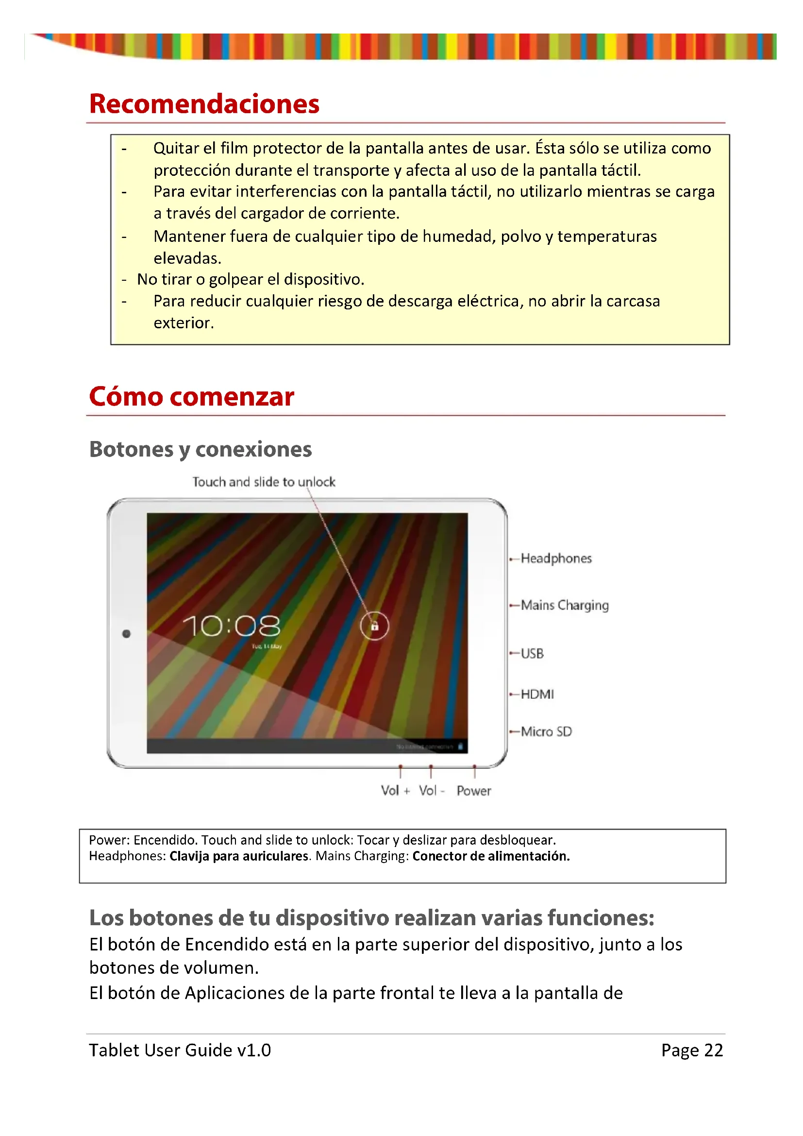 Tras un breve período de tiempo en el que no se usen, estos botones pueden verse reducidos o desaparecer. Para volverlos a poner, toca su ubicación. Observa el iciono Todas las aplicaciones en la esquina superior derecha. Tablet User Guide v1.0 Page 24Tócalo para ver todas tus aplicaciones y widgets. El centro de tu Pantalla de Inicio puede incluir iconos de aplicaciones y widgets, además de carpetas.