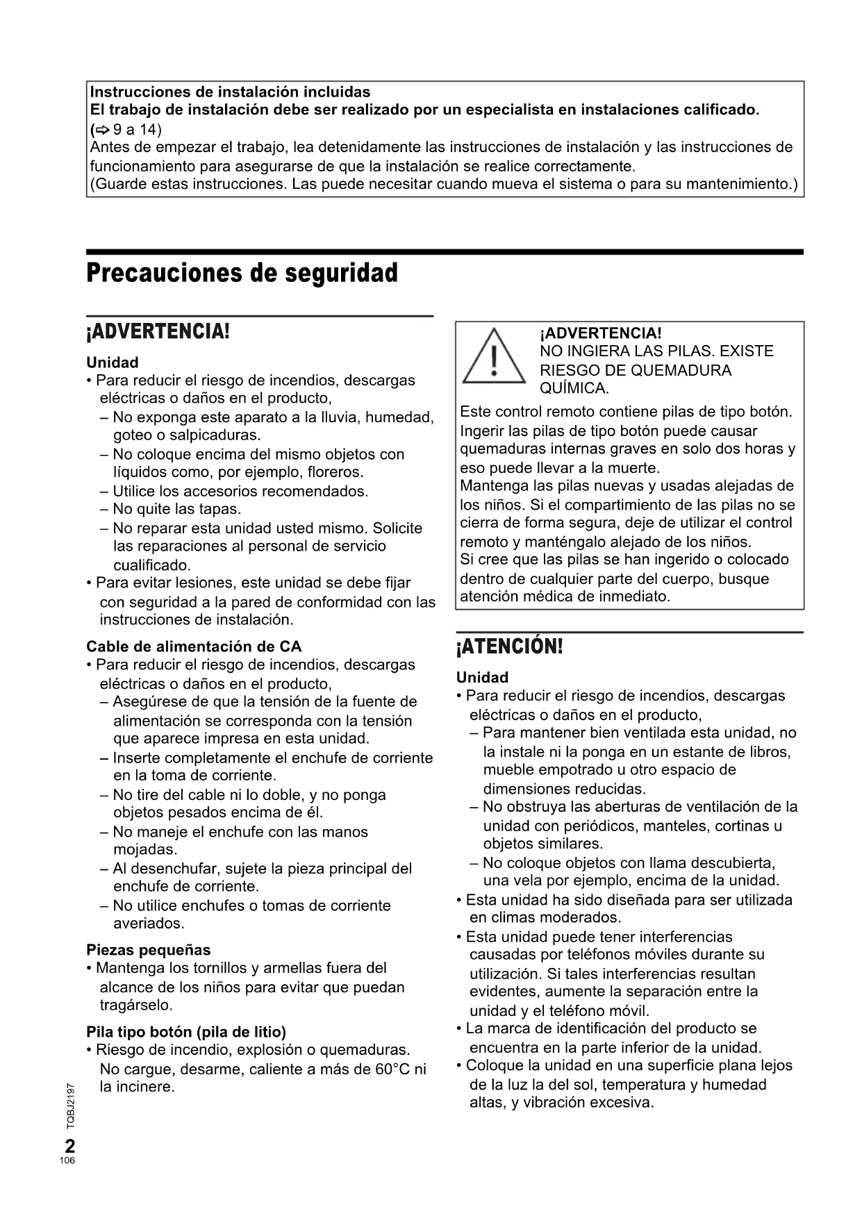 TQBJ2197_ES.fm Ubicación Precauciones de seguridad Nota: