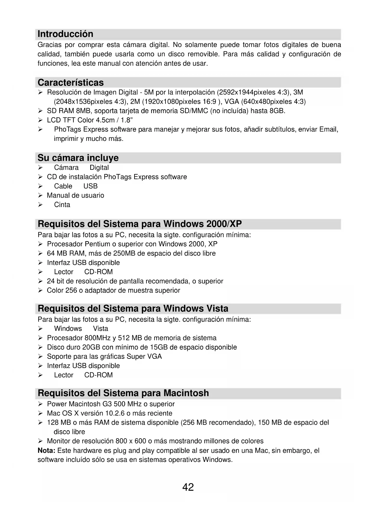 Gracias por comprar esta cámara digital. No solamente puede tomar fotos digitales de buena calidad, también puede usarla como un disco removable. Para más calidad y configuración de funciones, lea este manual con atención antes de usar.