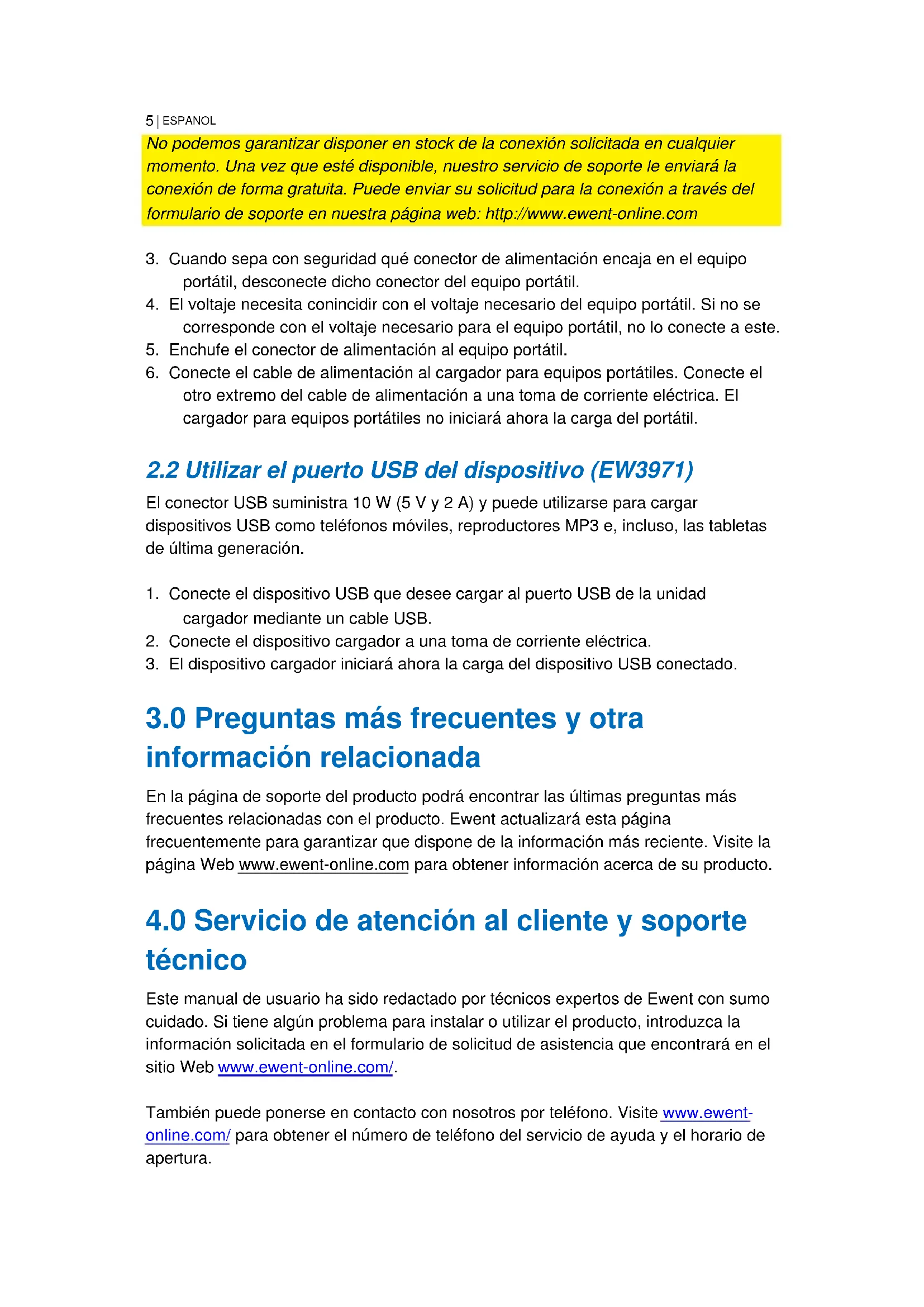 En la página de soporte del producto podrá encontrar las últimas preguntas más frecuentes relacionadas con el producto. Ewent actualizará esta página frecuentemente para garantizar que dispone de la información más reciente. Visite la página Web www.ewent-online.com para obtener información acerca de su producto.
