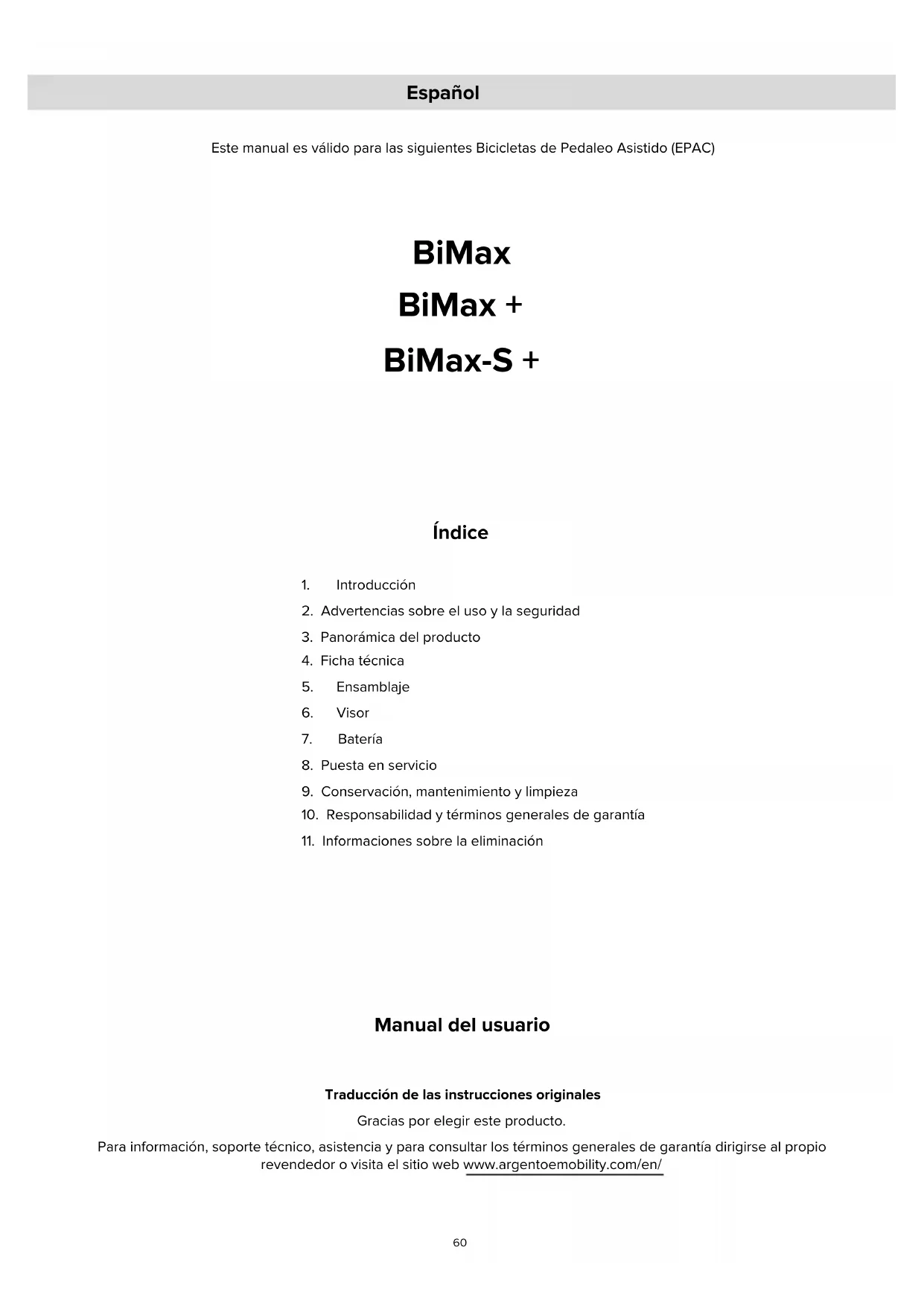 Bi Max - Bicicleta electrica Argento - Manual de uso y guía de instrucciones gratis