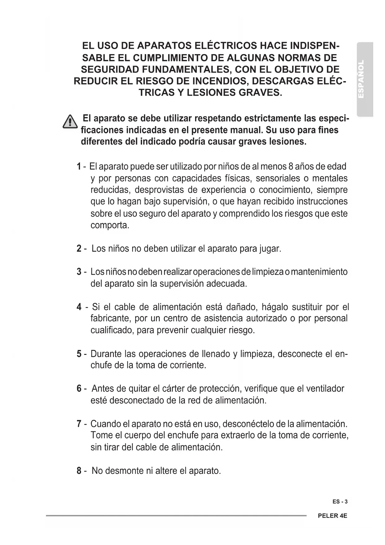 ción, el botón ENFRIAMIENTO debe estar en OFF.PELER 4E ESPAÑOL ES - 9 NOTA: LA PRIMERA VEZ QUE SE UTILIZA EL APARATO, ESTE PODRÍA LIBERAR UN LIGERO OLOR. CADA VEZ QUE SE REENCIENDE EL APARATO, PODRÍA FORMARSE CONDENSACIÓN EN LA REJILLA.