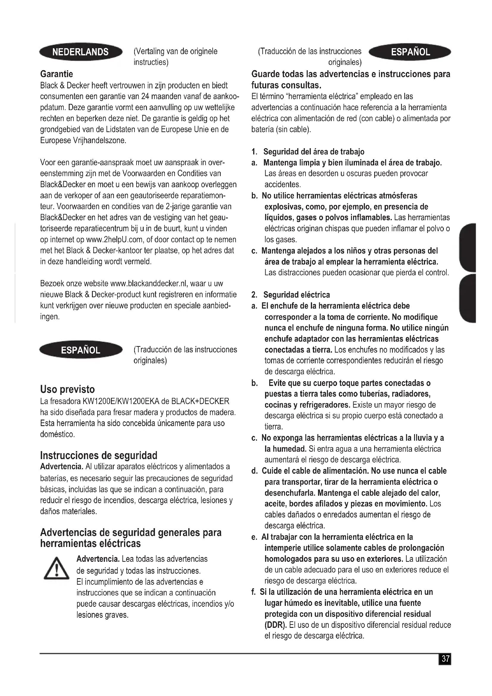 MANUAL DE USUARIO KW1200EKA BLACK & DECKER