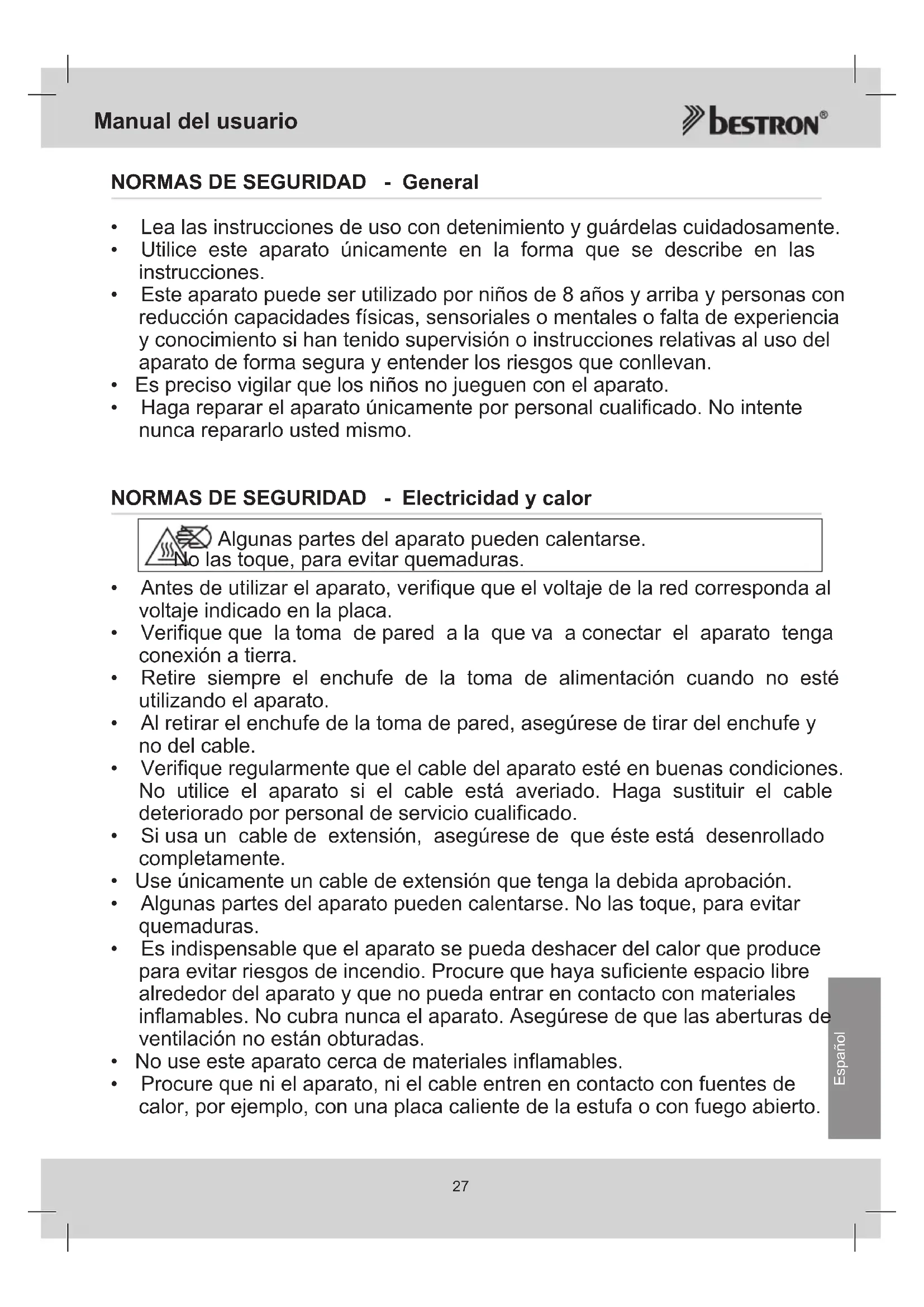 NORMAS DE SEGURIDAD - Electricidad y calor