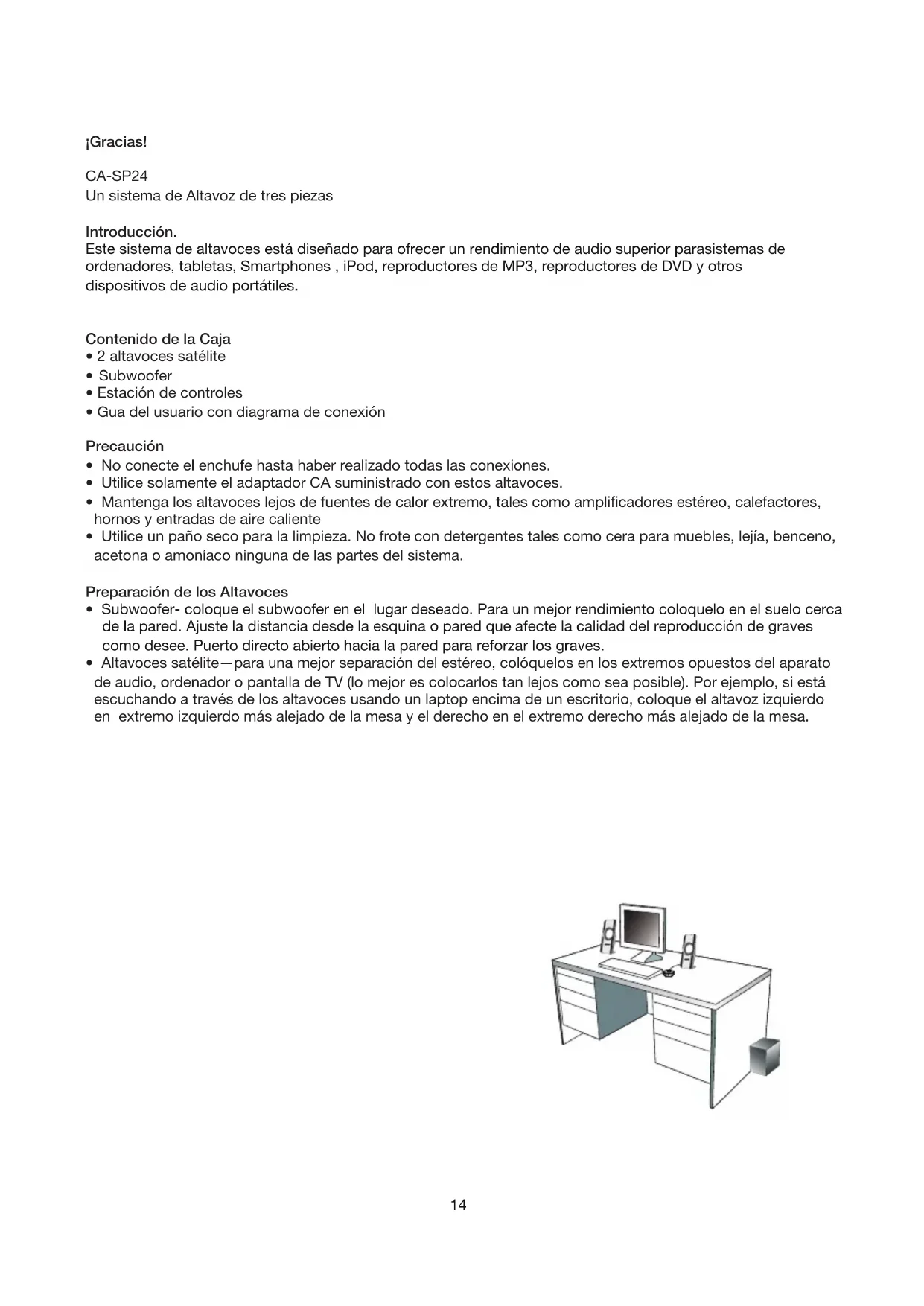 Descarga las instrucciones para tu Vocero en formato PDF gratis! Encuentra tus instrucciones CASP24 - Cyber Acoustics y toma tu dispositivo electrónico nuevamente en la mano. En esta página están publicados todos los documentos necesarios para el uso de su dispositivo. CASP24 de la marca Cyber Acoustics.