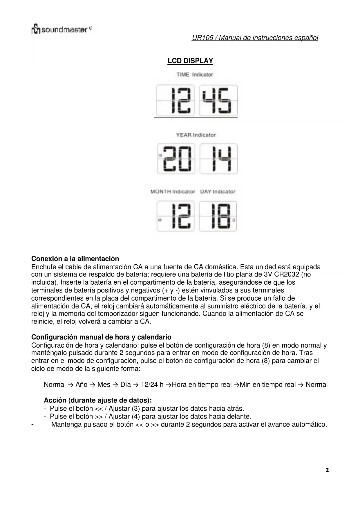 UR105GR - Radio reloj Soundmaster - Manual de uso y guía de instrucciones gratis