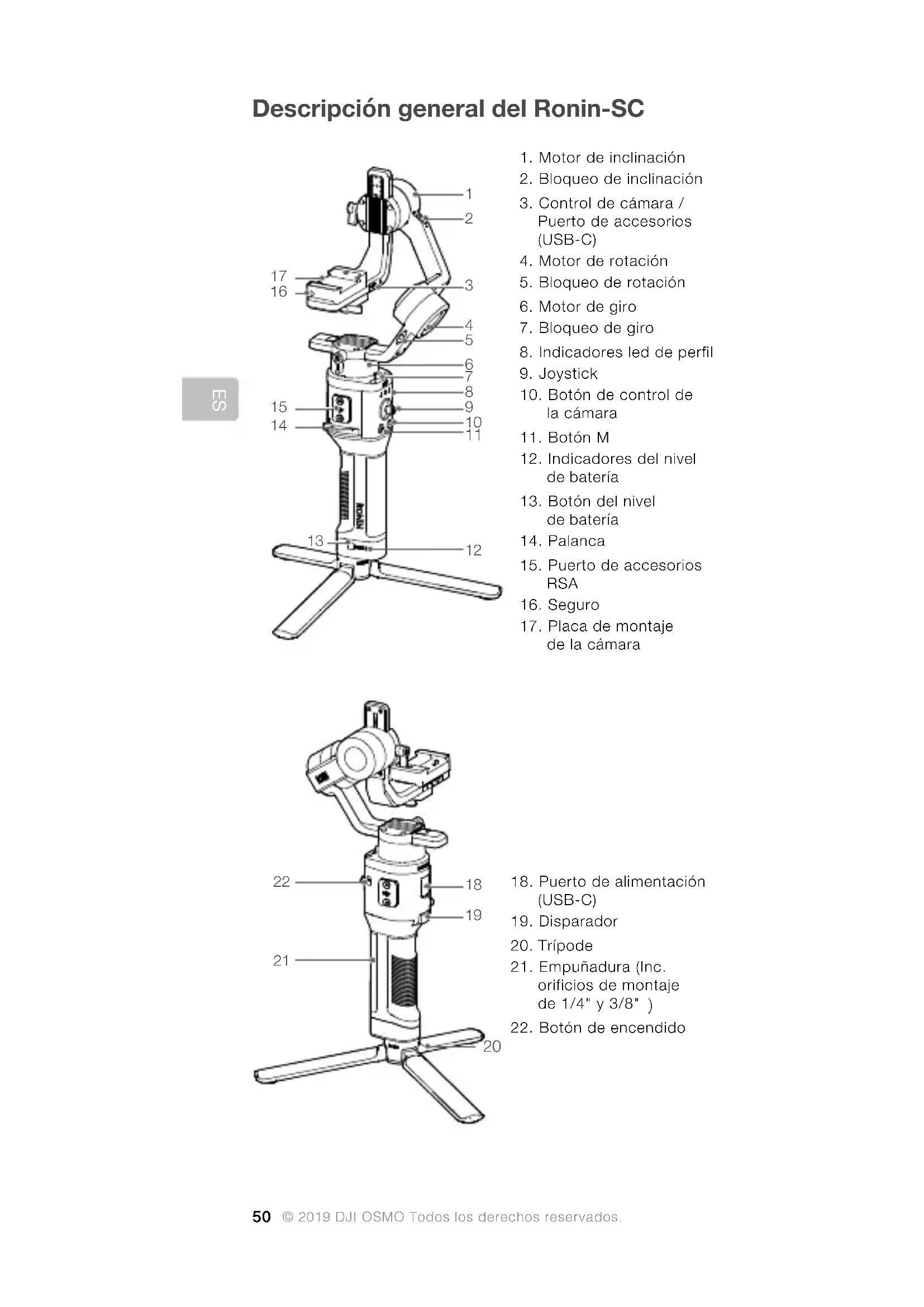 © 2019 DJI OSMO Todos los derechos reservados. Descripción general del Ronin-SC