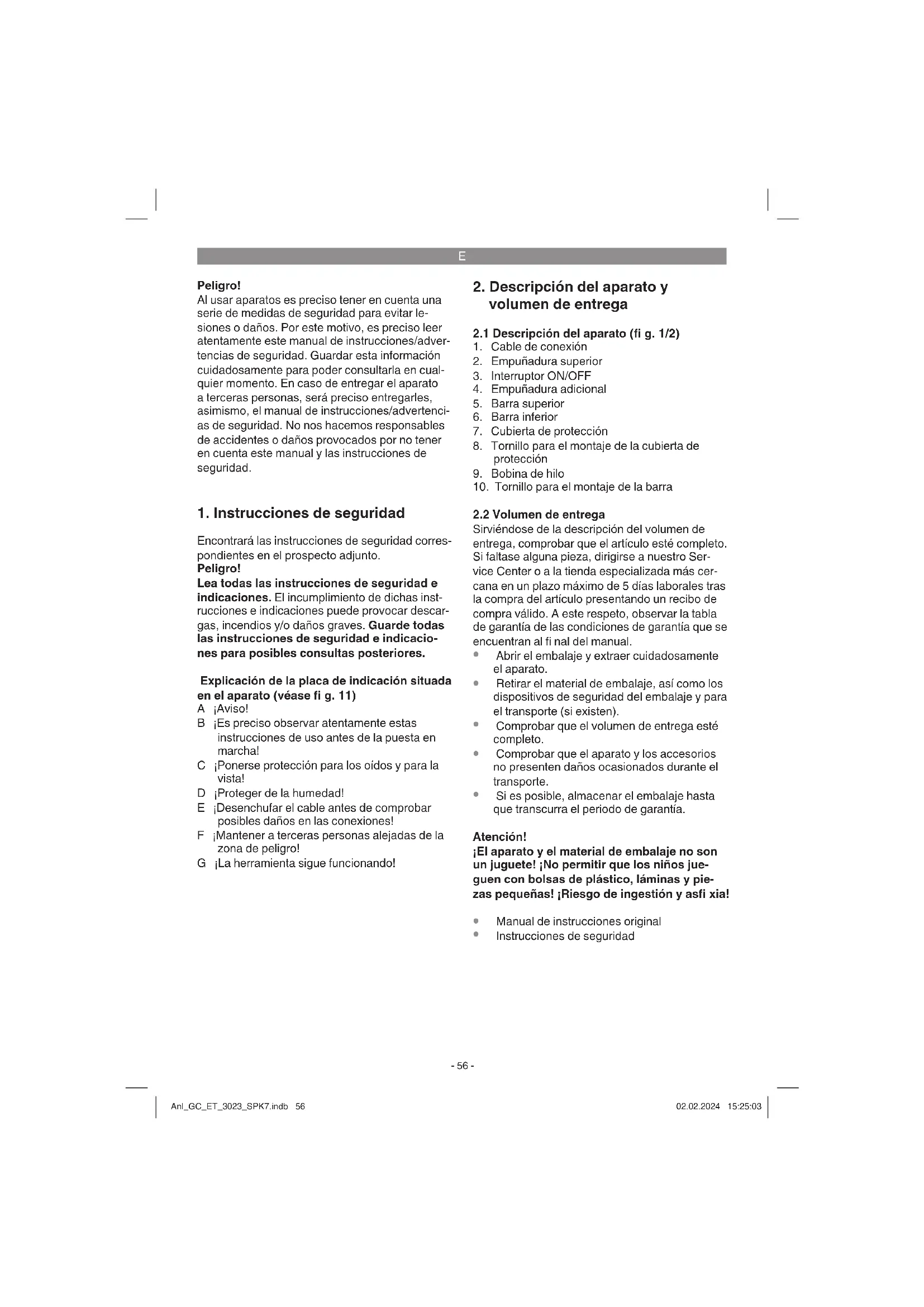 nes de las manos y los brazos si el aparato se utiliza durante un largo periodo tiempo, no se sujeta del modo correcto o si no se realiza un mantenimiento adecuado. Anl_GC_ET_3023_SPK7.indb 57Anl_GC_ET_3023_SPK7.indb 57 02.02.2024 15:25:0402.02.2024 15:25:04E