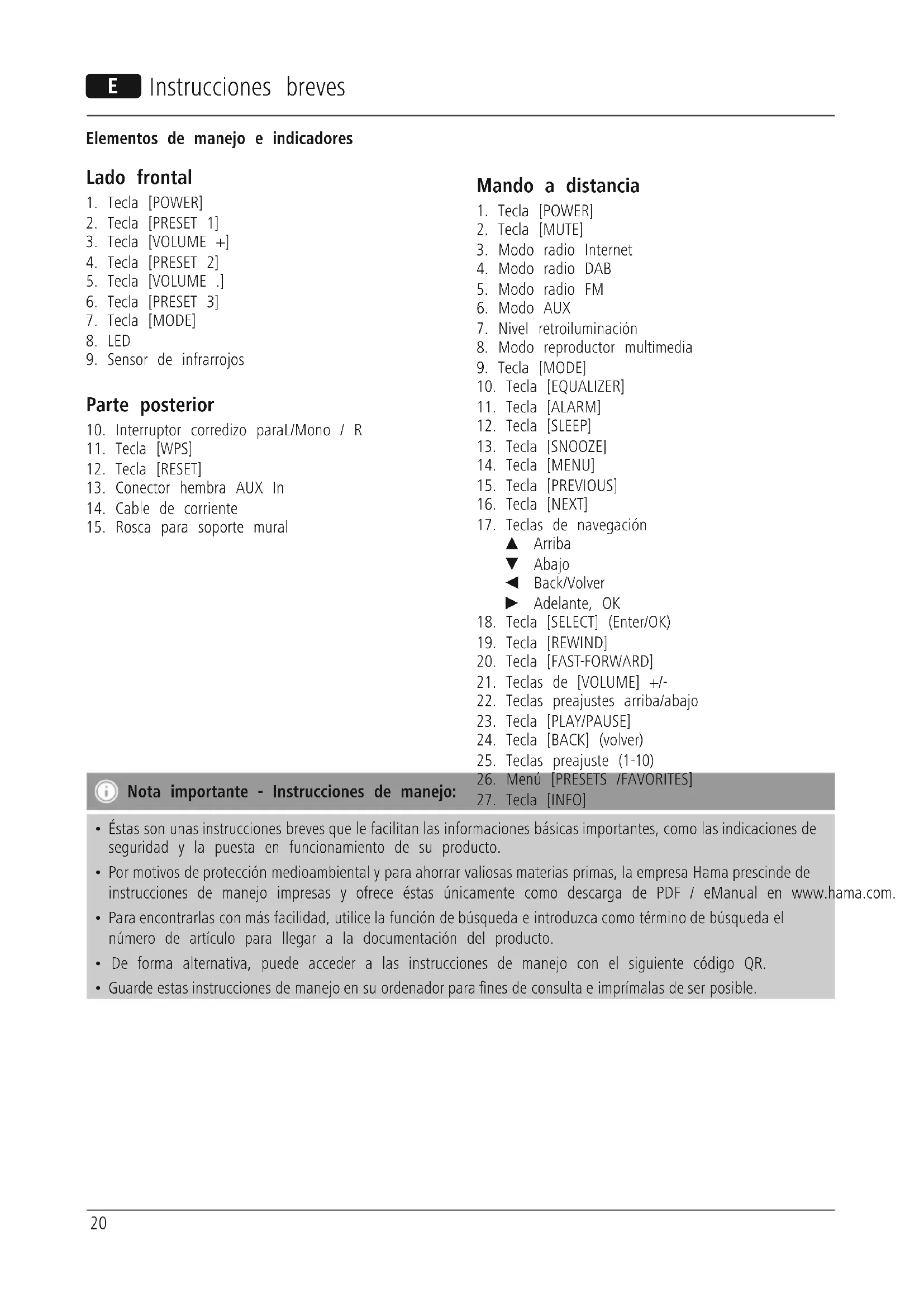 - Por motivos de protección medioambiental y para ahorrar valiosas materias primas, la empresa Hama prescinde de instrucciones de manejo impresas y ofrece éstas únicamente como descarga de PDF / eManual en www.hama.com.