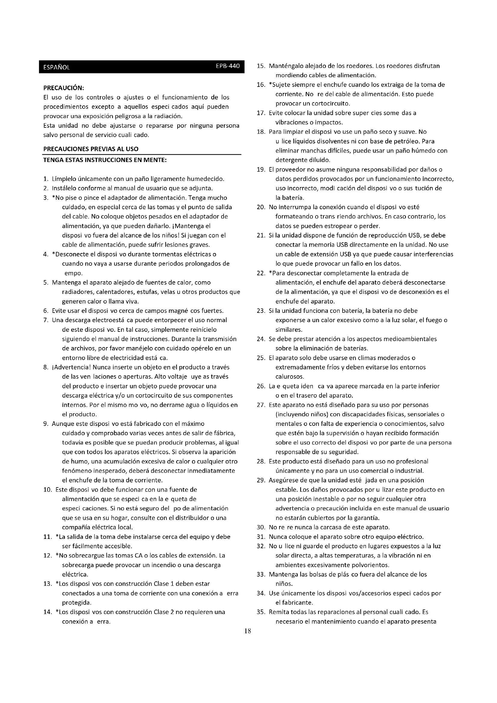 MANUAL DE USUARIO EPB440 LENCO